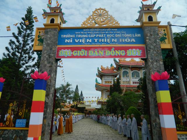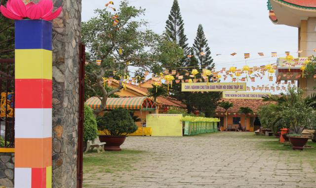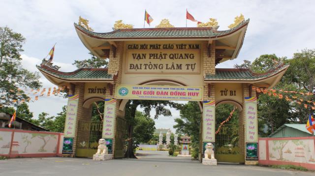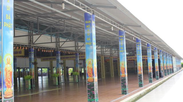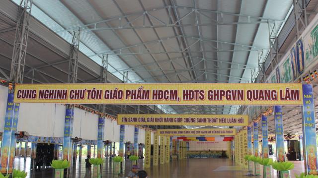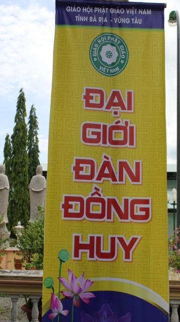 Từ cổng chính đi vào thuộc quốc lộ 51, BTC đã bố trí tất cả những băng rôn, áp phích, biểu ngữ với những dòng chữ trang trọng như: “Tuyển Phật Trường”, “Giới thể châu viên nhờ tha thiết, đàn tràng nghiêm tịnh bởi dốc lòng”, “Đồng tu chánh đạo lên bờ giác, Huy hoàng Phật sự vượt sông mê”, “Hôm nay thọ giới đủ đầy, là trồng huệ nghiệp dựng xây đời mình”, “Tòng Lâm đàn giới ngát hương, mười phương hiền thánh cùng thương hộ trì”, “Muốn vào biển giác Như Lai, phải trì giới pháp không phai sắc lòng”… Theo đó, rất nhiều cờ phướn được BTC sắp xếp, bố trí rợp khung trời Đại Tòng Lâm.