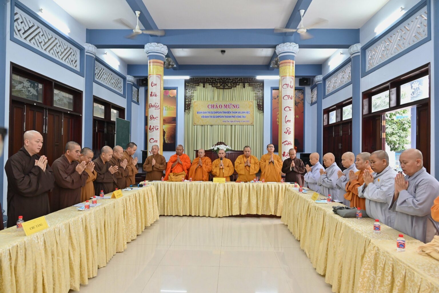 Trong chuỗi hoạt động thăm viếng các đơn vị trực thuộc theo kế hoạch số 515/KH-BTS, vào lúc 14h ngày 20/12/2023 (nhằm ngày 08/11 Quý Mão), phái đoàn Thường trực BTS tỉnh đã có buổi thăm và làm việc cùng BTS Tp. Vũng Tàu tại VP. BTS thành phố đặt tại chùa Liên Trì Phường 2 Tp. Vũng Tàu.