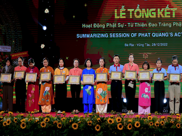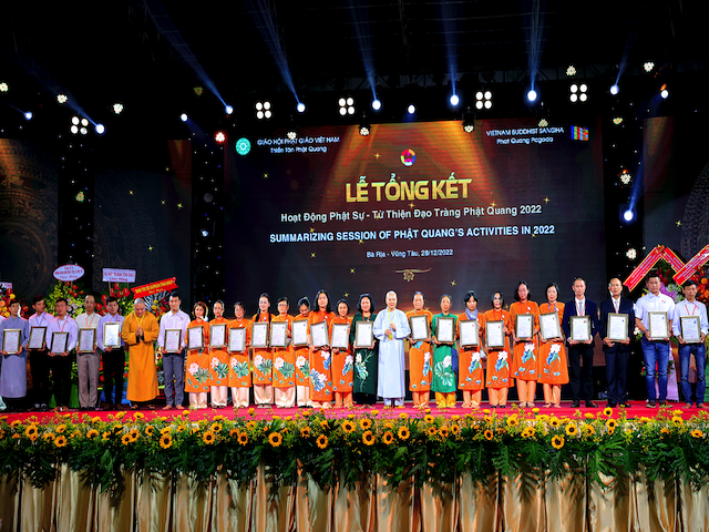 Trước khi kết thúc buổi Lễ tổng kết, đại diện Tổng Đạo tràng đã gửi lời cảm ơn sâu sắc đến sự quan tâm, giúp đỡ của các cấp Giáo hội, các cấp chính quyền, các ban ngành, đoàn thể. Đồng thời, tôn vinh, ghi nhận tấm lòng vàng của những người làm công tác từ thiện, các nhà hảo tâm… Những sự giúp đỡ, hỗ trợ, ủng hộ quý báu đó chính là nền tảng, là đòn bẩy giúp Tổng Đạo Tràng Phật Quang hoàn thành tốt mục tiêu, nhiệm vụ trong năm 2022. Hy vọng năm 2023 tới, sẽ tiếp tục nhận được sự ủng hộ, đồng hành, hỗ trợ của tất cả các cấp lãnh đạo, các ban ngành, đoàn thể, cá nhân trong cộng đồng để công tác Phật sự, cũng như công tác từ thiện, xã hội của Tổng Đạo Tràng được viên mãn hơn nữa.