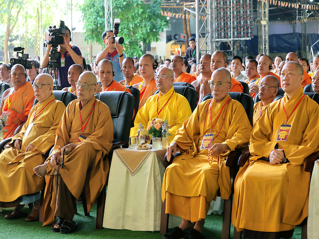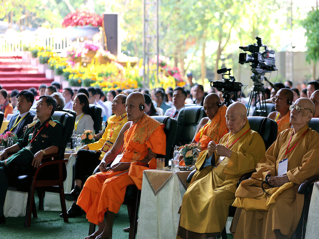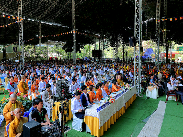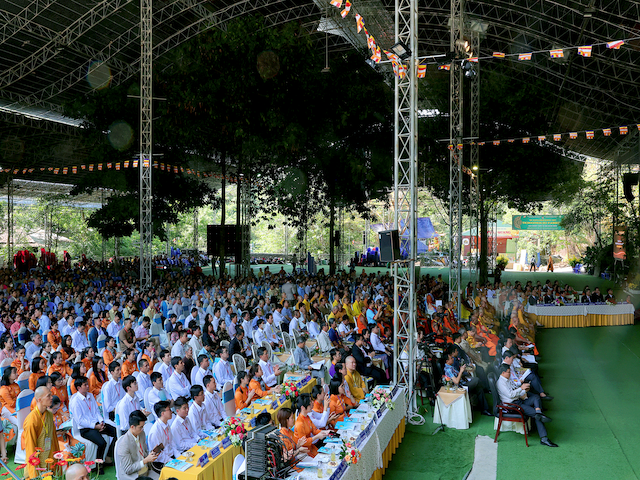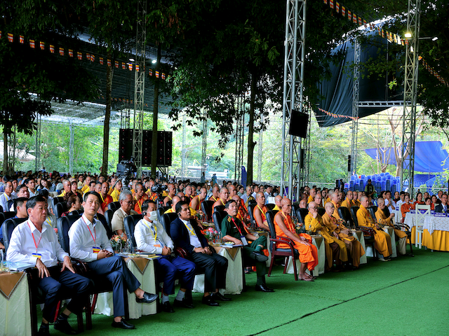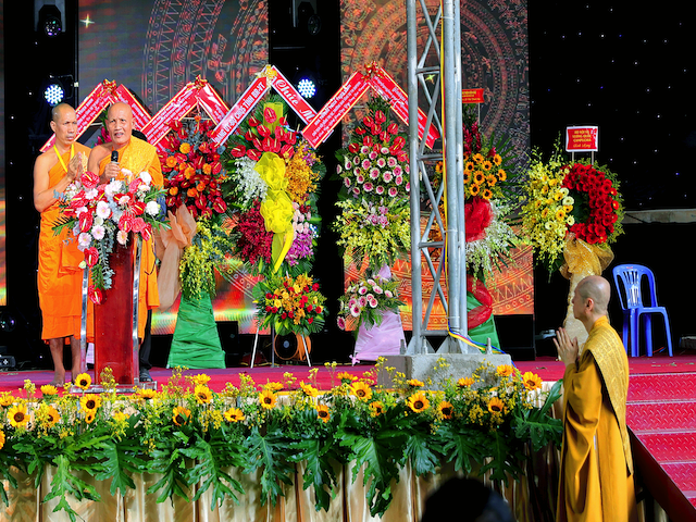 Kế đến, TT TS Thích Chân Quang bày tỏ sự trân trọng, tri ân trước sự quang lâm, chứng minh của các Bậc tôn túc – những vị lãnh đạo tinh thần của GHPGVN, và Phật giáo Campuchia, cùng tất cả quan khách, lãnh đạo, Phật tử gần xa.