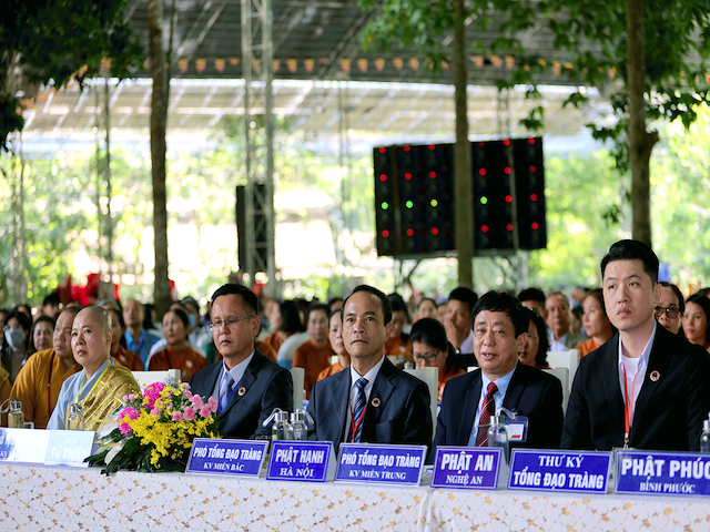 Cư sĩ Trí Thành – Phó Tổng Đạo tràng khu vực miền Nam, Hội trưởng Hội Từ Thiện, Chúng trưởng Đạo tràng Phật Hiển tỉnh Tiền Giang; Cư sĩ Nghiêm Minh – Phó Tổng Đạo tràng khu vực miền Bắc, Hội phó Hội Từ Thiện khu vực phía Bắc, Chúng trưởng Đạo tràng Phật Hạnh, Hà Nội; Cư sĩ Nhật Huệ Thái – Phó Tổng Đạo tràng khu vực miền Trung, Hội phó Hội Từ Thiện khu vực miền Trung, Chúng trưởng Đạo tràng Phật An, Nghệ An; Cư sĩ Khải Phương Nhất – Tổng Thư ký Tổng Đạo tràng, Chúng trưởng Đạo tràng Phật Phúc, tỉnh Bình Phước; Cư sĩ Huệ Huy Bình – Phó Tổng thủ lĩnh Chúng thanh niên Phật tử Phật Quang miền Bắc, Thủ lĩnh CTN khu Trung tâm Hà Nội; Cư sĩ Khiêm Thông Duy – Quyền Phó Tổng thủ lĩnh Chúng thanh niên Phật tử Phật Quang miền Trung, Thủ lĩnh Chúng Thanh niên Huế; Cư sĩ Phúc Ân Chí – Phó Tổng thủ lĩnh Chúng thanh niên Phật tử Phật Quang miền Nam, Thủ lĩnh CTN khu Trung tâm TP. HCM; cùng Ban điều hành 56 Đạo tràng và 59 Chúng Thanh niên Phật tử Phật Quang trên khắp cả nước cũng như ở nước ngoài; và hơn 2.000 Phật tử đến từ khắp các tỉnh thành cùng với hơn 4.000 sinh viên và Chúng thanh niên Phật tử Phật Quang công quả phục vụ cho Đại lễ Phật Thành Đạo PL.2566 – DL:2022 đồng tham dự.