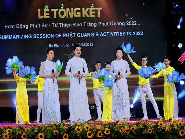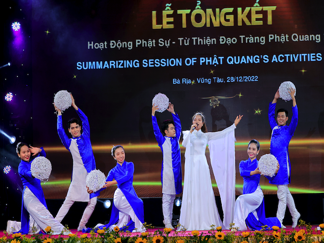 Lễ tổng kết đã diễn ra thật trang nghiêm, xúc động, xen kẽ là chương trình văn nghệ đón chào kỷ niệm ngày Phật Thành Đạo PL: 2566 – DL: 2022 với các tiết mục đặc sắc, được các văn nghệ sĩ Phật tử tham gia biểu diễn, góp phần làm cho buổi Lễ tổng kết diễn ra sôi nổi và mang đậm nét văn hoá của chùa Phật Quang.