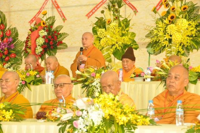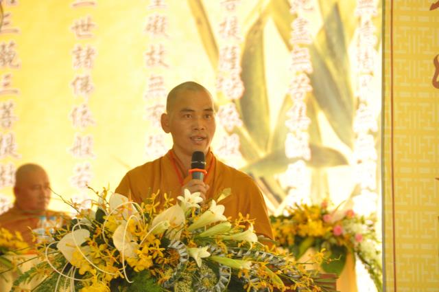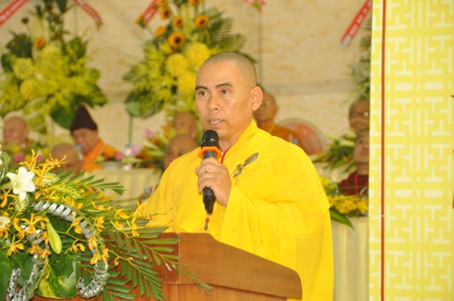 ĐĐ. Thích Nhuận Nghĩa, Chánh Thư ký BTS GHPGVN tỉnh BR-VT thay mặt ban Thư ký, ban Kiến đàn báo cáo công tác tổ chức.