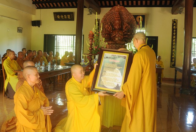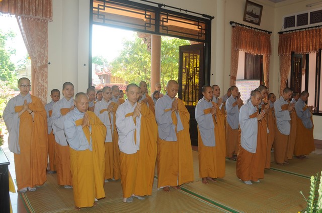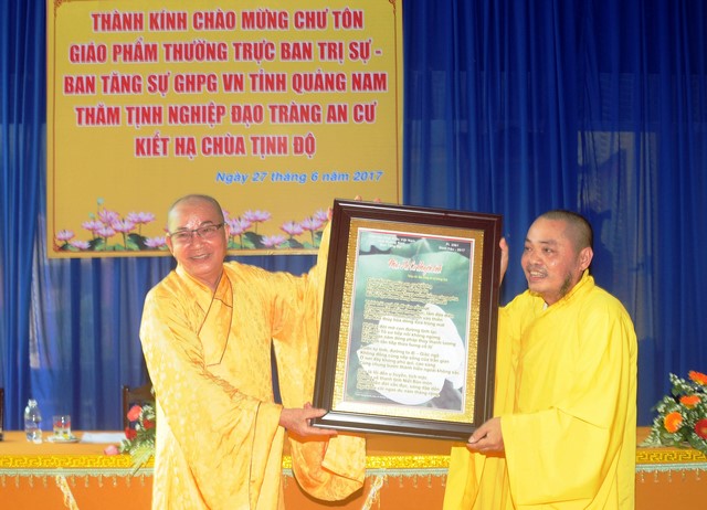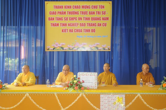 Theo đó, tại trú xứ của chư Tăng: tổ đình Tịnh Độ, (TP.Tam Kỳ có 98 vị Tỳ-kheo, 6 vị Sa-di và 8 điệu), tổ đình Chúc Thánh (TP.Hội An, 101 vị Tỳ-kheo, chúng Sa-di và ngũ giới 23 vị); tại trú xứ an cư của Ni: chùa Diệu Quang (TP.Tam Kỳ, 20 vị Tỳ-kheo-ni, 5 vị Thức-xoa, 3 vị Sa-di-ni và 15 điệu), chùa Bảo Thắng (TP.Hội An, 101 vị Tỳ-kheo-ni, 16 vị Thức-xoa, 23 vị Sa-di-ni và 10 điệu) và chùa Châu Phong (H.Điện Bàn, 14 vị Tỳ-kheo-ni, 4 vị Thức-xoa, 4 vị Sa-di-ni và 2 điệu). HT.Thích Hạnh Niệm và HT.Thích Thiện Thành đều có lời đạo từ, sách tấn chư Tăng Ni tinh tấn tu học.
