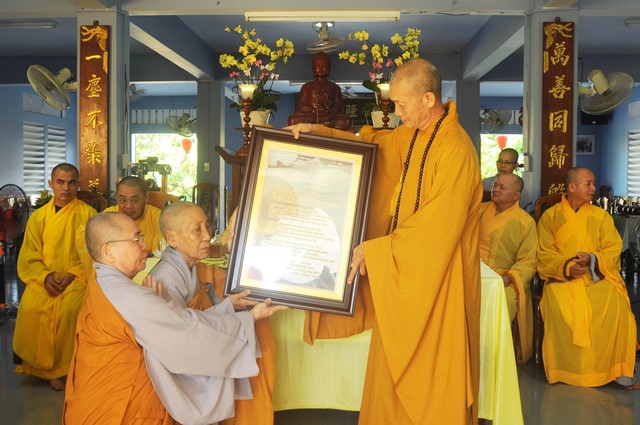Đoàn đến mỗi trú xứ làm việc đều có những phần quà lưu niệm đặc biệt tặng cho Ban Chức sự, Ban Lãnh chúng và đạo tràng.