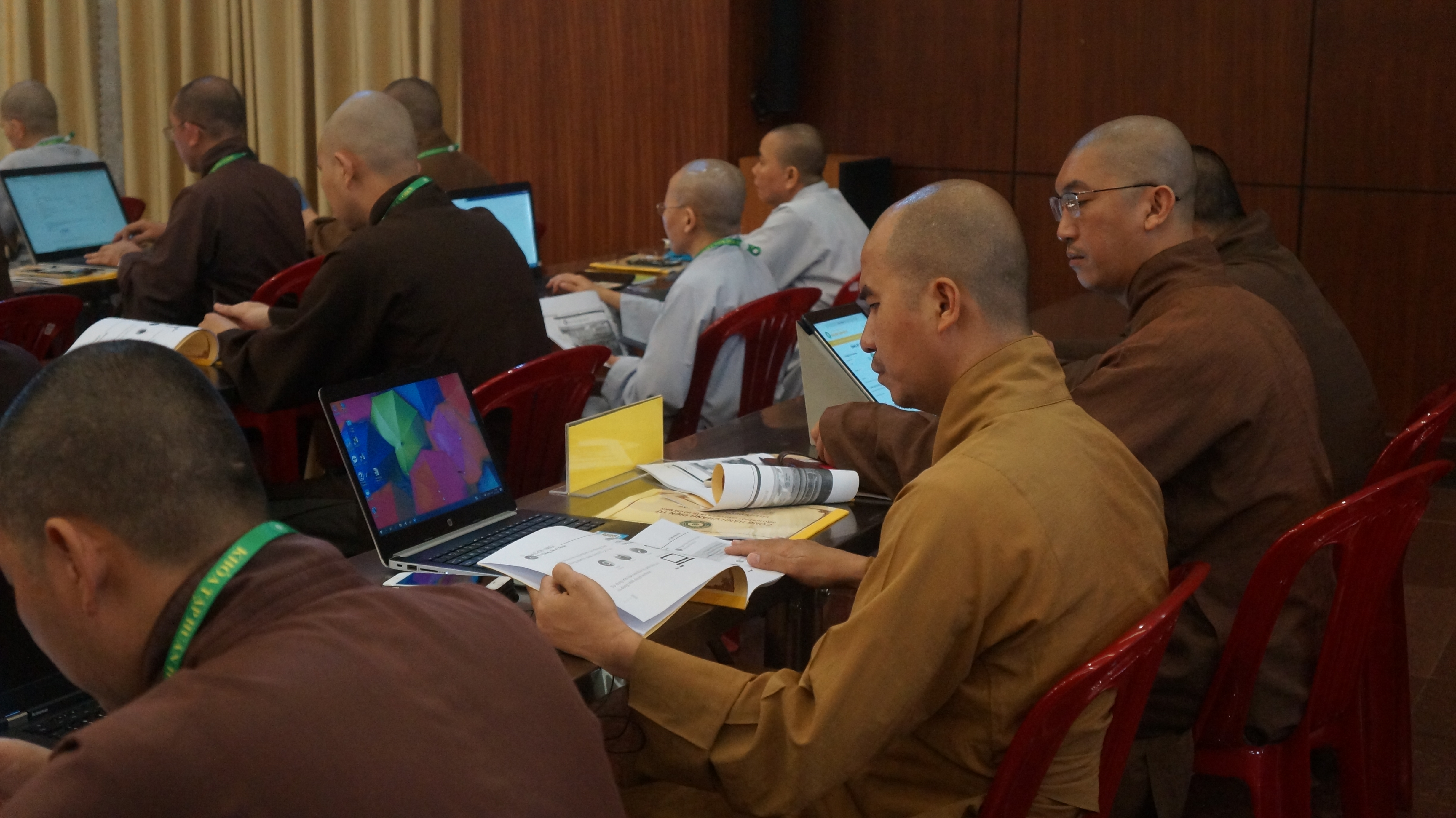 Lễ khai mạc Khóa tập huấn cho sự quang lâm chứng minh HT.Thích Thiện Tánh – Phó Chủ tịch HĐTS, Phó Ban Trị sự GHPGVN TP.HCM, HT.Thích Thiện Đức, HT.Thích Huệ Văn – đồng Phó Ban Trị sự GHPGVN TP.HCM; TT.Thích Thiện Quý – Phó Trưởng ban kiêm Chánh Thư ký BTS GHPGVN TP.HCM; TT.Thích Quang Thạnh – Phó Thư ký kiêm Chánh văn phòng BTS GHPGVN TP.HCM; HT.Thích Nhật Hỷ – Trưởng ban Hoằng pháp; HT.Thích Hiển Đức – Phó Thường trực ban Pháp chế; TT.Thích Tâm Hải – Trưởng ban Thông tin – Truyền thông; ĐĐ.Thích Trung Nguyện – Phó Thư ký BTS cùng chư tôn đức Phó Văn phòng BTS, và hơn 100 Tăng Ni Học viên thuộc BTS GHPGVN 24 quận huyện và các Ban ngành trực thuộc đồng tham dự.