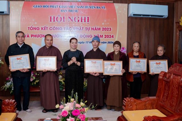 Trước những thành quả đạt được trong năm 2023 của BTS Phật giáo huyện Ba Vì, UBND huyện Ba Vì cũng có bằng khen trao tặng tới 18 tập thể và 11 cá nhân đã có nhiều đóng góp to lớn trong phong trào xây dựng chùa tinh tiến và hoạt động Phật sự năm 2023.