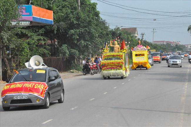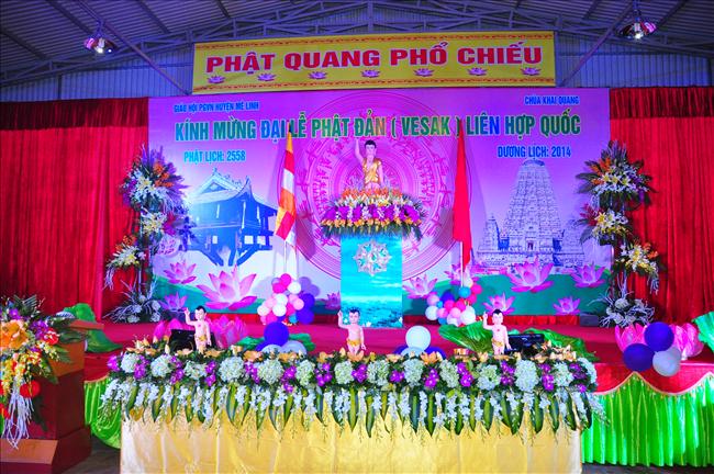 Hưởng ứng tuần lễ kỷ niệm ngày Đức Phật Đản sinh, Chư tôn đức trong BTS cùng Phật tử và chính quyền huyện Mê Linh đã long trọng tổ chức lễ rước Phật theo các khu vực hành chính trong Huyện. Bắt đầu từ Chùa Thường Lệ (Trụ sở BTS huyện) – khu vực hành chính huyện – xã Tam Đồng – xã Thạch Đà – xã Tự Lập – xã Tiến Thịnh – xã Kim Hoa – xã Văn Khê – xã Mê Linh – xã Tiền Phong và kết thúc hành trình rước Phật tại chùa Khai Quang – thôn Do Hạ – xã Tiền Phong – huyện Mê Linh.