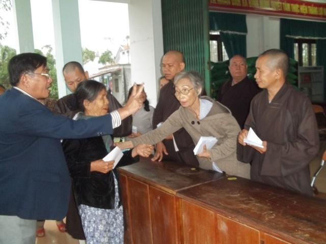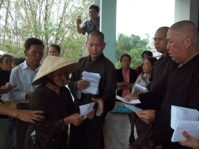 Chia sẽ mất mát với đồng bào các tỉnh Miền Trung vừa gánh chịu hai trận bão liên tiếp số 10 và số 11, khiến cho bà con phải lâm vào tình cảnh rất khó khăn. Được tin, Ban trị sự GHPGVN tỉnh Tiền Giang tổ chức phái đoàn đến thăm và tặng 1000 phần quà mỗi phần trị giá 500.000đ tiền mặt tại hai tỉnh Quảng Nam và Quảng Bình từ ngày 24 đến 28 tháng 10 vừa qua.