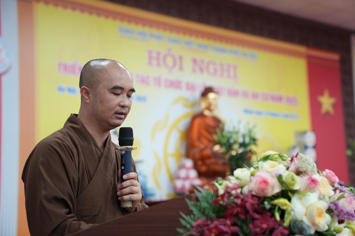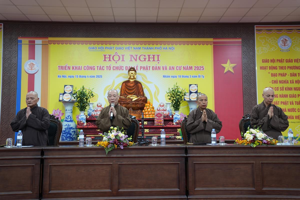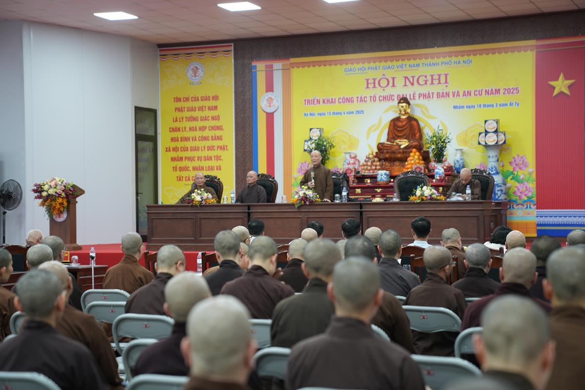 Sau khi Hòa thượng Trưởng BTS tuyên bố khai mạc hội nghị, Thượng tọa Thích Đạo Phong đã thông qua thông bạch Hướng dẫn tổ chức đại lễ Phật đản PL. 2569 – DL. 2025 và hướng dẫn việc An cư kết hạ 2025 của BTS GHPGVN TP. Hà Nội.