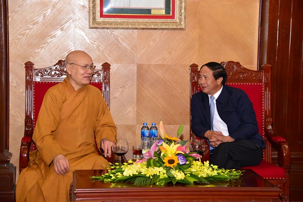 Tại Thành ủy Hải Phòng, đồng chí: Lê Văn Thành – Ủy viên TƯ Đảng, Bí thư Thành ủy, chủ tịch HĐND thành phố tiếp phái đoàn Phật giáo thành phố Hải Phòng