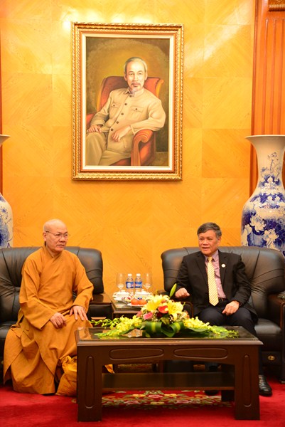 Tại Thành ủy Hải Phòng, đồng chí: Lê Văn Thành – Ủy viên TƯ Đảng, Bí thư Thành ủy, chủ tịch HĐND thành phố tiếp phái đoàn Phật giáo thành phố Hải Phòng