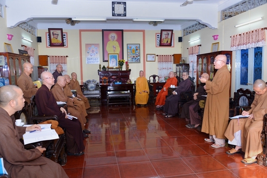 Buổi họp do Hòa Thượng Thích Trí Quảng – trưởng ban trị sự chủ trì, với sự tham gia của chư tôn đức đại diện các ban ngành : HT Thích Thiện Tánh , HT. Thích Tịnh Hạnh, HT.Thích Như Niệm, HT. Thích Như Tín, HT.Thích Minh Thông, HT.Thích Minh Chơn, HT. Thích Huệ Văn…