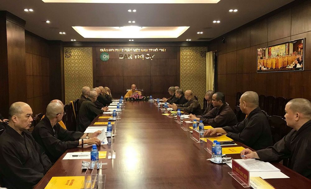 Theo tin từ VP BTS GHPGVN TP.HCM, sáng ngày 14/01/2018, tại trụ sở BTS – Việt Nam Quốc Tự (Q.10), chư tôn đức Ban Thường trực BTS GHPGVN TP.HCM, các ban chuyên môn trực thuộc họp giao ban để triển khai một số hoạt động Phật sự cuối năm.