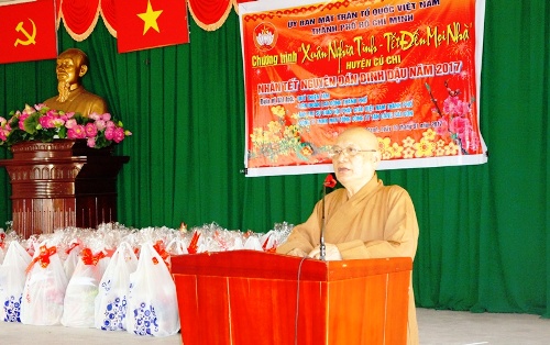 Tại đây, Đoàn đã tặng 600 phần quà cho đồng bào nghèo, có hoàn cảnh khó khăn (mỗi phần quà trị giá 700 nghìn đồng. Tại đây, HT.Thích Thiện Tánh đã có cuộc chia sẻ thân tình với bà con Huyện Củ Chi. Hòa Thượng phát biểu, Phật giáo luôn đồng hành với dân tộc, đồng hành với nhân dân thành phố. Cho nên, những phần quà này là tất cả tình cảm của Tăng Ni Phật tử gửi đến bà con trong dịp tết cổ truyền Việt Nam. Hy vọng, với sự quan tâm của Đảng và chính quyền nhân dân thành phố, đặc biệt là giới Phật giáo, bà con sẽ cảm thấy vui hơn, ấm lòng hơn trong cái tết đoàn viên đầy nghĩa tình nầy.