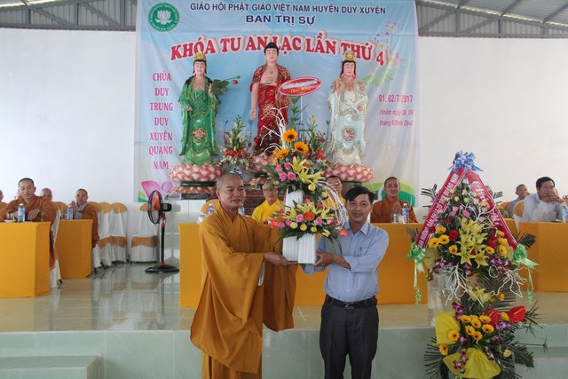Về phía chính quyền huyện có ông Trần Công Thành, PCT Thường trực UBMTTQVN huyện Duy Xuyên; Ông Mai Quang Vĩnh, Phó trưởng PNV huyện; ông Nguyễn Văn Ba, PCT UBND xã Duy Trung; ông Nguyễn Công Vĩnh, Chủ tịch UBMTTQVN xã cùng hơn 300 Cư sĩ Phật tử về tham dự khóa tu.