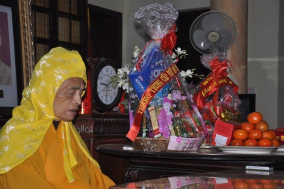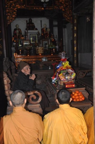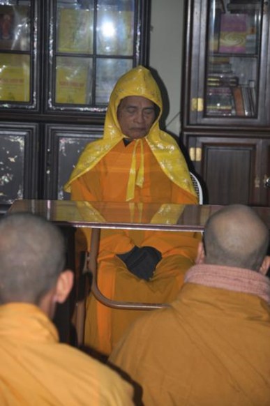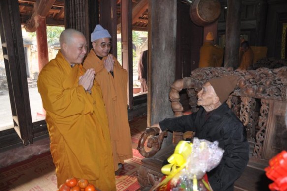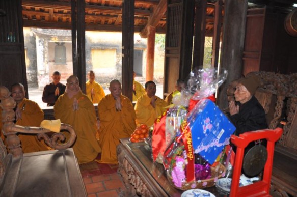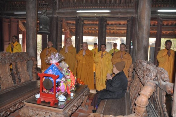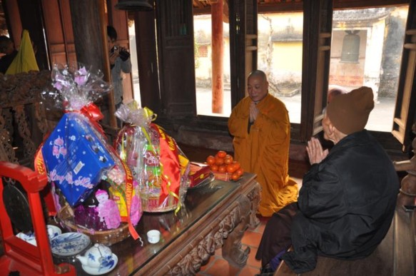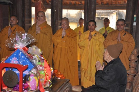 Thượng tọa nói "Nhân tết cổ truyền năm Tân Mão sắp tới, theo phong tục tập quán người dân Việt đón tết năm mới mừng xuân, trên tinh thần Phật giáo bất ly thế gian Pháp, hôm nay huynh đệ chúng con trong Ban trị sự Phật giáo Hà Nội thay mặt cho Tăng Ni Phật tử Thủ đô về Tổ Đình, trước nhất đỉnh lễ chư vị Lịch đại Tổ Sư, sau nữa là đỉnh lễ khánh tuế pháp tòa Đức Pháp chủ.
