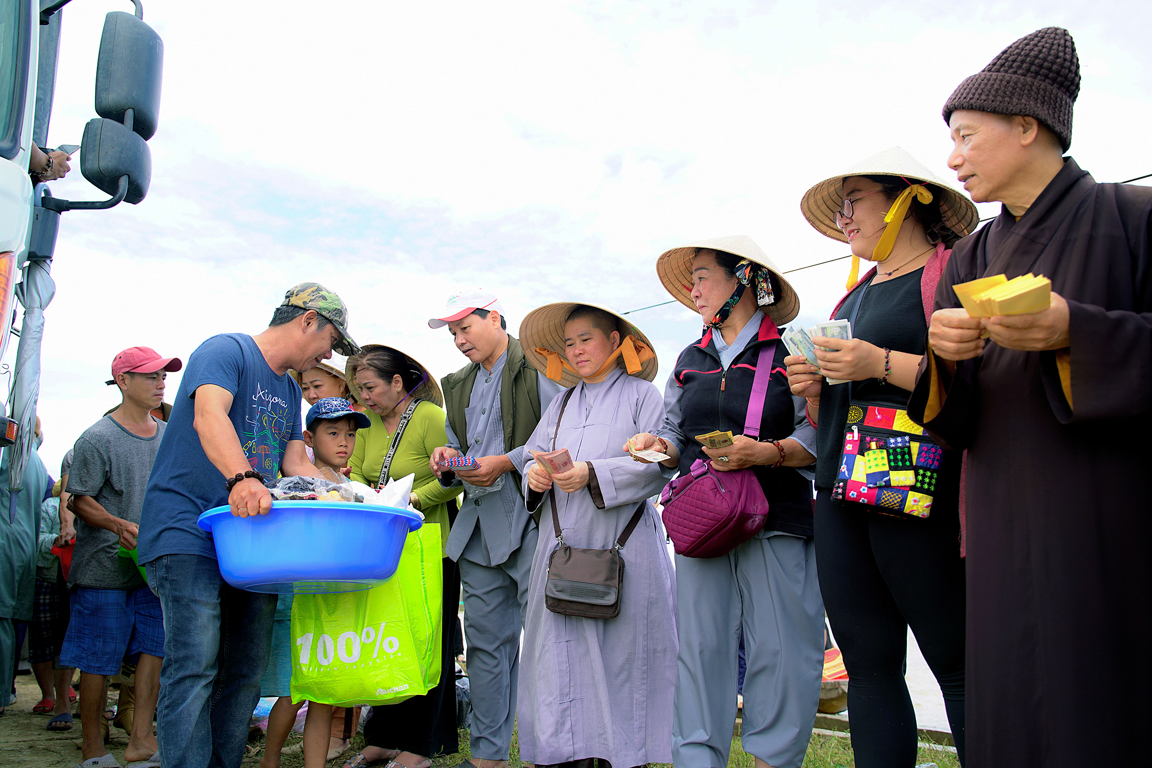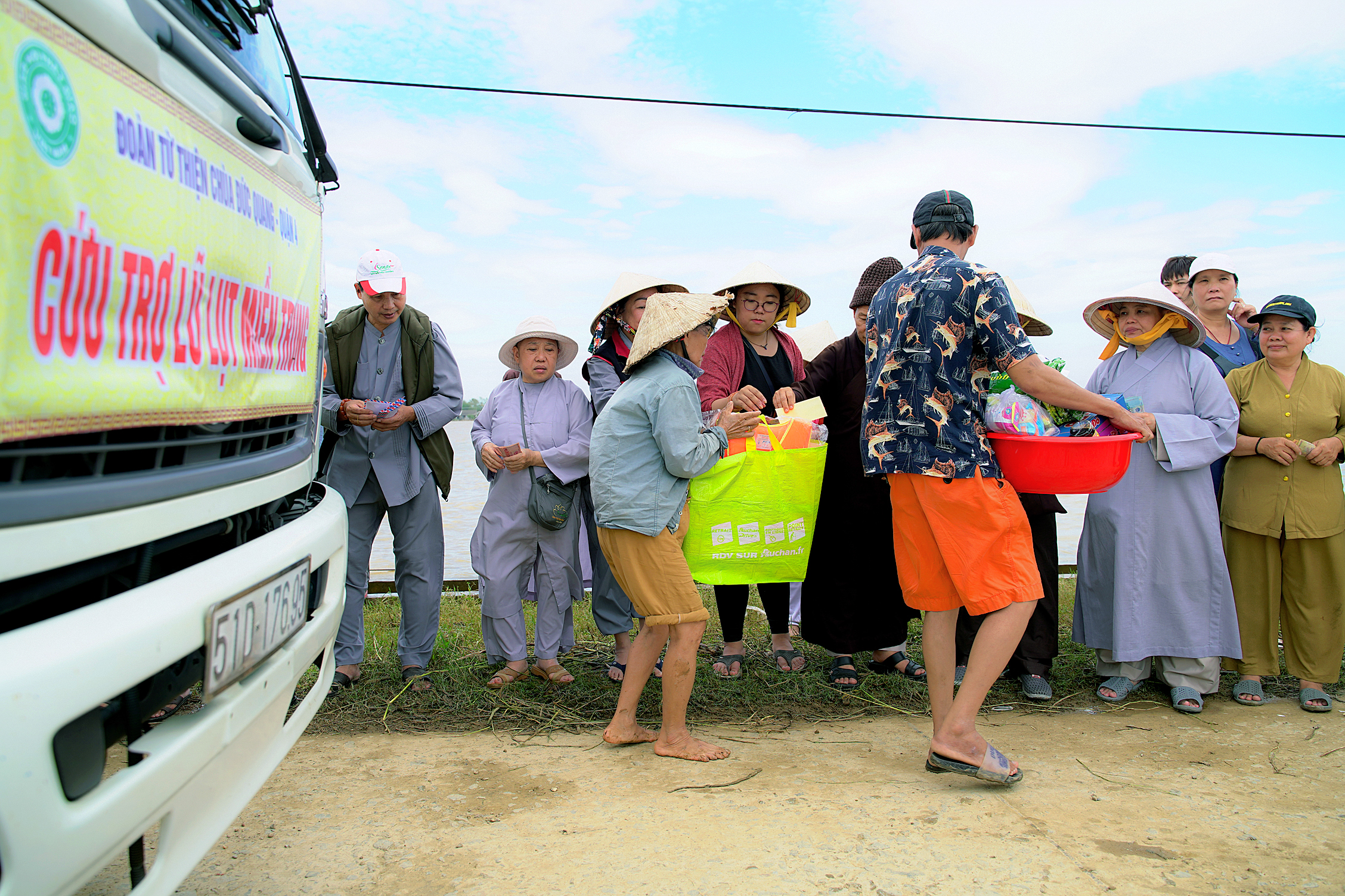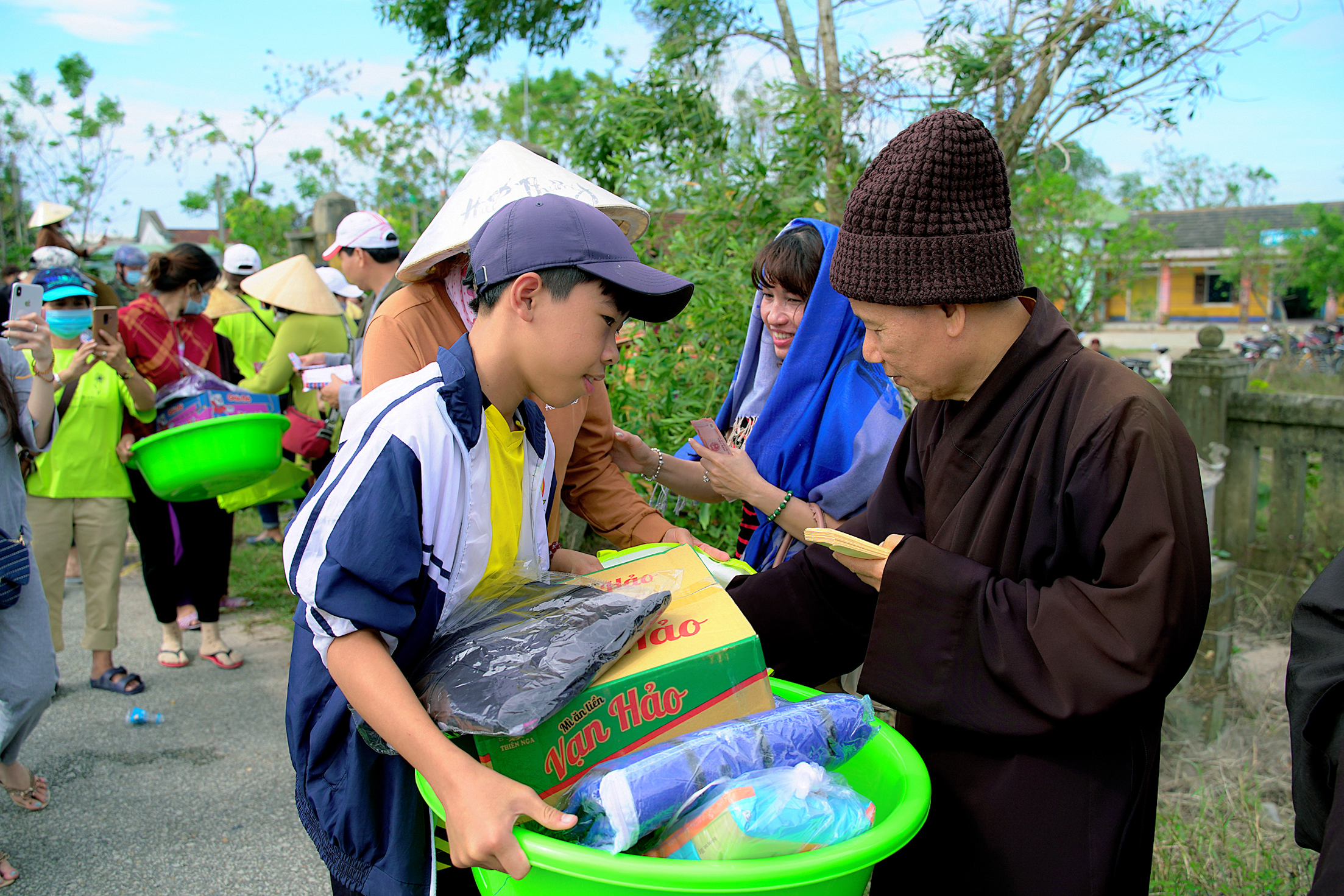 Đoàn đã trao tặng những phần quà tại các tỉnh Quảng Ngãi, Quảng Trị, Thừa Thiên Huế và tỉnh Quảng Bình. Đoàn cũng đã gửi cúng dường các chùa trong tông môn và các gia đình bị thiệt hại nặng nề do bão gây ra.