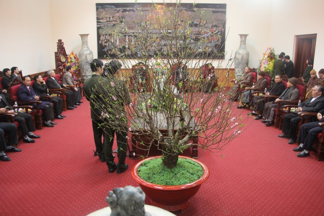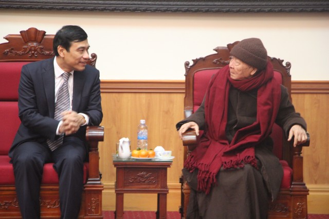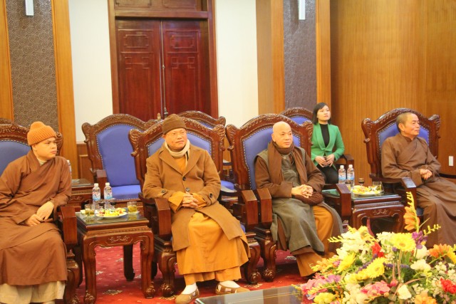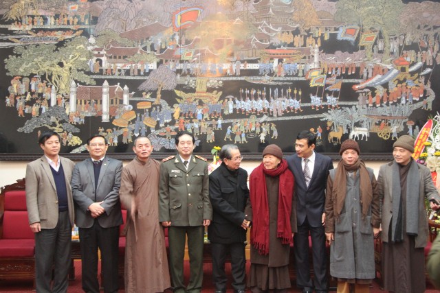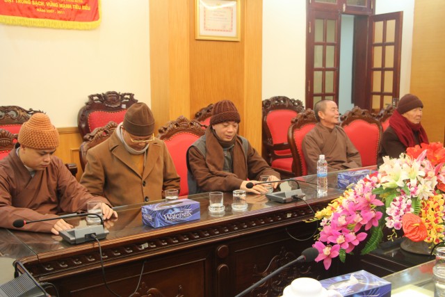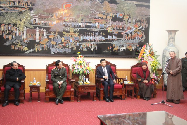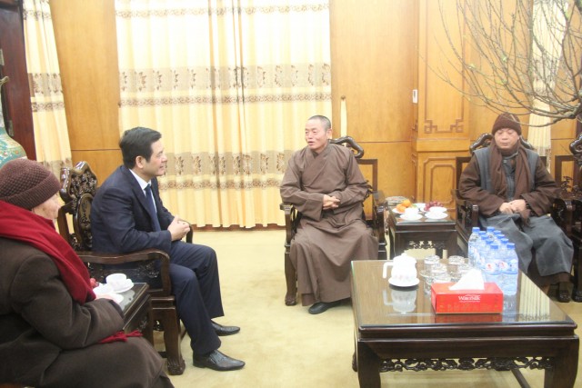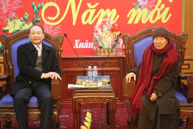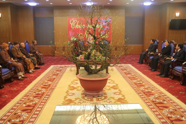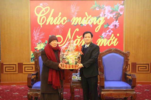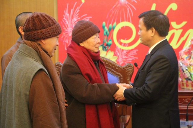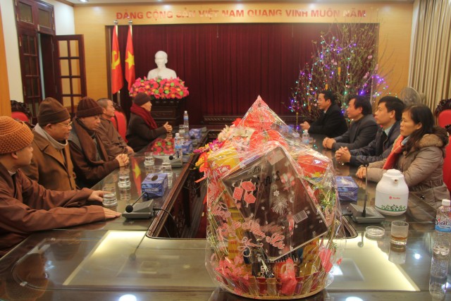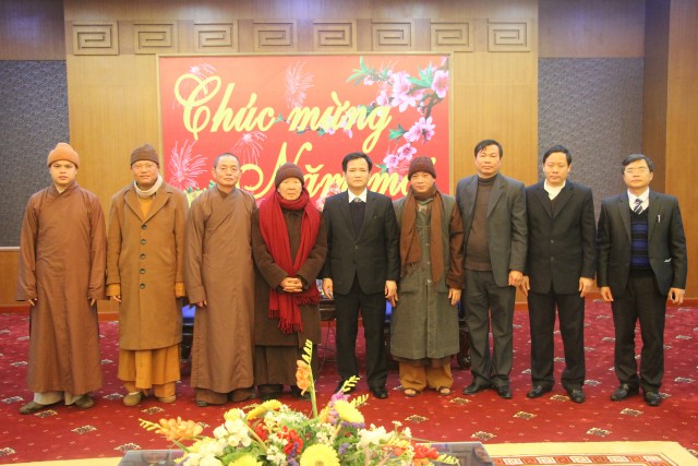 Dịp này, đại diện các cơ quan, ban, ngành đã thân mật đón tiếp đoàn và gửi lời chúc đến chư tôn đức Hòa thượng, Thượng tọa, Đại Đức lãnh đạo PG tỉnh cùng toàn thể Tăng, Ni trong địa bàn tỉnh luôn được khỏe mạnh, đón xuân an lạc và hoàn thành tốt các Phật sự trong năm 2016 trên nền tảng làm “tốt đạo đẹp đời” để góp phần vào công cuộc phát triển xã hội trên nhiều phương diện. Qúy vị lãnh đạo cũng thông báo tóm lược tới chư tôn đức tình hình kinh tế – xã hội tỉnh nhà trong năm qua và nhiệm vụ sắp tới, đánh giá cao những đóng góp của Phật giáo tỉnh nhà trong xây dựng khối đại đoàn kết toàn dân, giữ gìn an ninh trật tự và phát triển kinh tế; xin hứa sẽ tạo điều kiện giúp đỡ Phật giáo về cơ chế, chính sách để xây dựng Trung tâm Phật giáo tỉnh và các công trình tôn giáo, tín ngưỡng tâm linh khác.
