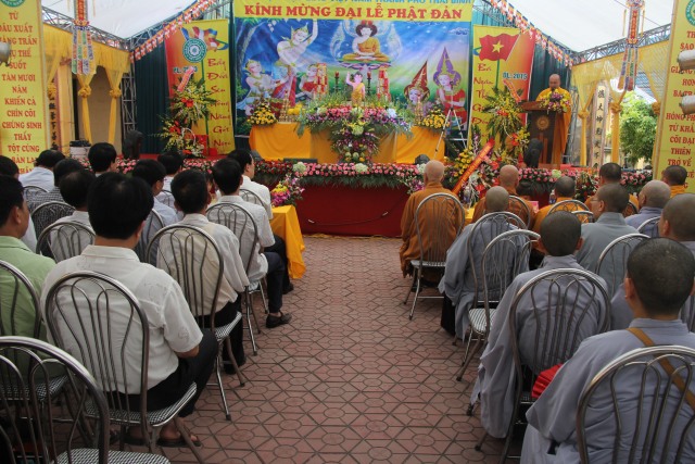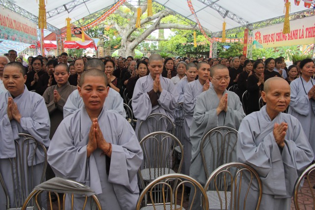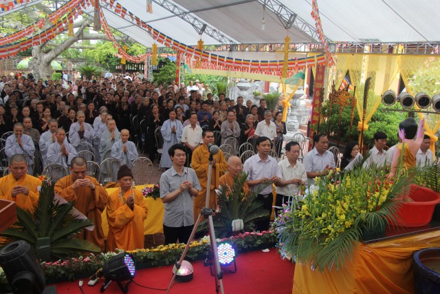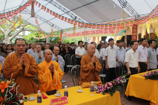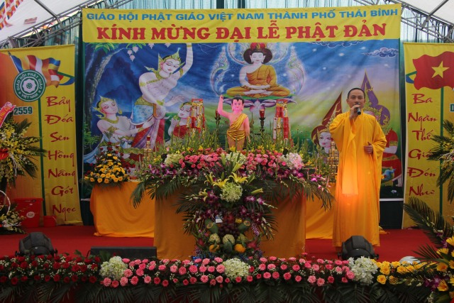 Sáng ngày 21/05/2015 (4/4/Ất Mùi), tại chùa Sùng Nghiêm (P.Hoàng Diệu – TP.Thái Bình), trụ sở của BTS GHPGVN TP.Thái Bình long trọng tổ chức Đại lễ Phật đản PL.2559 – DL.2015. Đến chứng minh, tham dự Đại lễ có: HT.Thích Thanh Dục, Uỷ viên Thường trực HĐCM GHPGVN, chứng minh BTS PG tỉnh Thái Bình; TT.Thích Thanh Định, UV HĐTS GHPGVN, Phó ban Thường trực BTS PG tỉnh; TT.Thích Thanh Tụ, Trưởng BTS PG huyện Thái Thụy; ĐĐ.Thích Trí Sử, Trưởng BTS PG TP.Thái Bình, Trưởng ban tổ chức Đại lễ; NS.Thích Đàm Thoa, Phó BTS kiêm Trưởng Phân ban Ni giới tỉnh, cùng chư tôn đức Tăng, Ni BTS PG các huyện, thành phố trong tỉnh; chư tôn đức trụ trì các tự viện trên địa bàn thành phố.