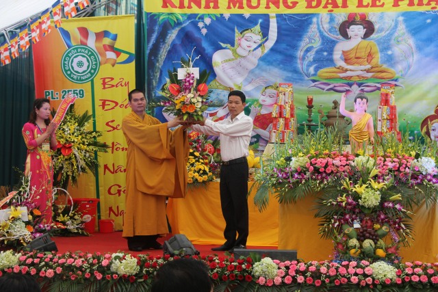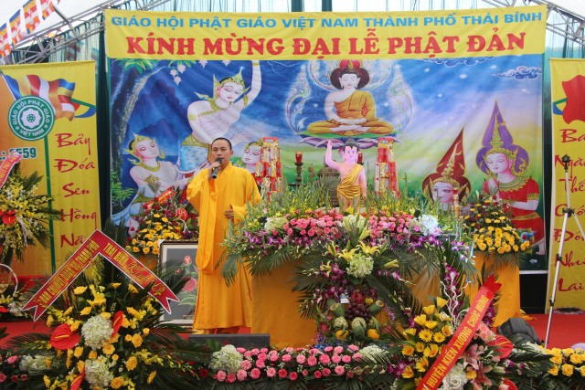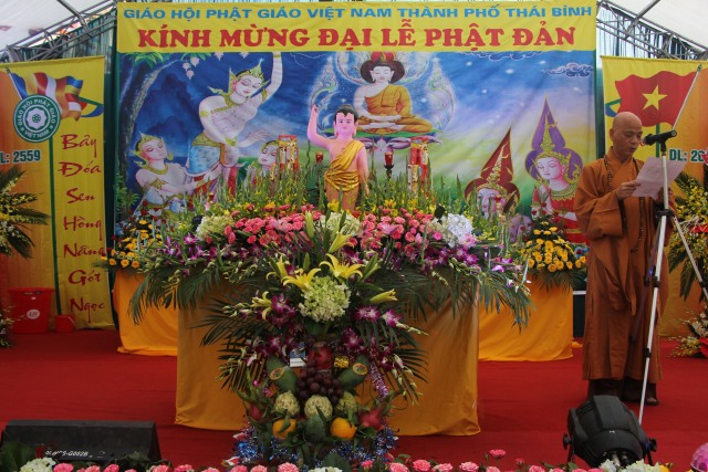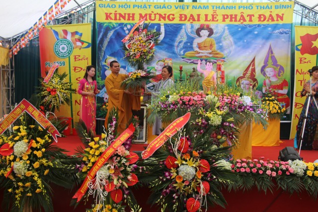 Tại buổi lễ, TT.Thích Thanh Định thay mặt cho chư tôn đức tuyên đọc “Thông điệp của Đức Pháp chủ HĐCM GHPGVN gửi Tăng, Ni, cư sĩ Phật tử Việt Nam nhân dịp Đại lễ Phật đản PL.2559-DL.2015”. Tiếp đó, ĐĐ.Thích Trí Sử, Trưởng BTS PG TP.Thái Bình, Trưởng ban tổ chức Đại lễ tuyên đọc diễn văn Phật đản của Hòa thượng Chủ tịch HĐTS. Dịp này, chư tôn đức chứng minh, quý quan khách, đại diện Phật tử đã tặng hoa chúc mừng BTS PG thành phố nhân dịp Đại lễ Phật đản.