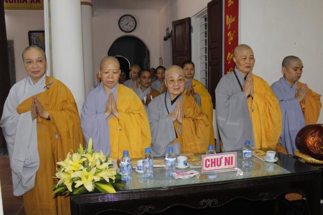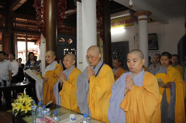 Về chứng minh và tham dự buổi lễ có: Thượng tọa Thích Minh Tuấn – Phó BTS kiêm Trưởng Ban nghi lễ GHPGVN thành phố Hà Nội, Trưởng BTS GHPGVN quận Hà Đông; Ni trưởng Thích Đàm Kim – Viện chủ Tổ đình Nga My Hoàng Mai; Ni trưởng Thích Đàm Nhâm – Viện chủ Tổ đình Linh Đường; Đại đức Thích Nguyên Thanh – Trưởng BTS GHPGVN quận Hoàng Mai cùng chư tôn Đức Tăng Ni trong Ban Trị sự GHPGVN quận Hoàng Mai.