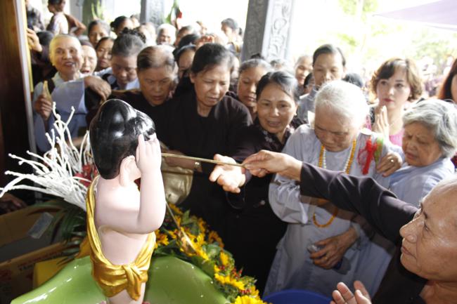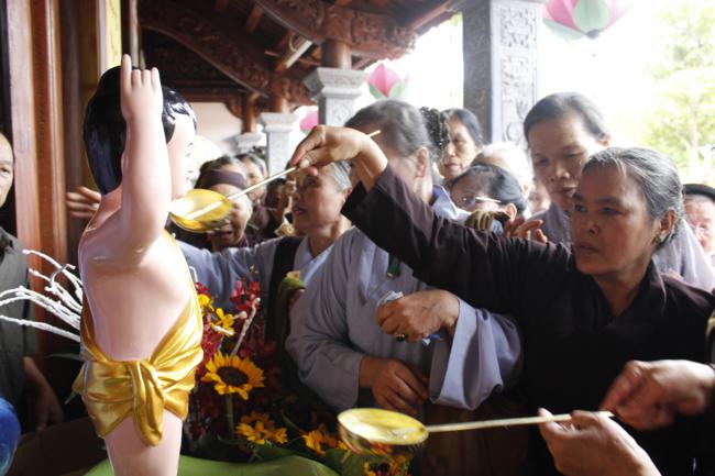 Trong giờ phút trang nghiêm và long trọng nhất, chư tôn đức Tăng Ni cùng Quý vị Phật tử đã cử hành nghi lễ tụng kinh Phật đản truyền thống và làm lễ tắm Phật.