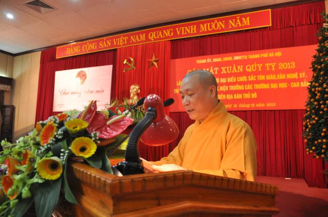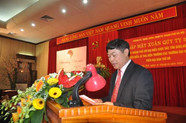 Tại buổi gặp mặt, Phó Bí thư Thường trực Thành ủy Hà Nội Nguyễn Công Soái khẳng định Đảng bộ Hà Nội đánh giá cao công lao đóng góp của các chức sắc tôn giáo, văn nghệ sỹ, trí thức trong sự nghiệp phát triển của Thủ đô, đồng thời thông báo những thành tựu kinh tế-xã hội thành phố đạt được trong năm 2012.
