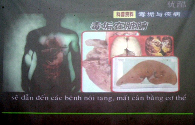 Trước khi bắt đầu bài học các em được xem một đoạn video có độ dài hơn 10 phút nói về việc con người mắc nhiều loại độc tố, dẫn đến việc mắc nhiều bệnh nguy hiểm. Giảng viên đã nêu ra 5 nguyên nhân chính hình thành độc tố trong cơ thể con người: Thứ nhất là khí hậu của ta bị ô nhiễm rất nặng nề, việc thở không đúng cách dẫn đến phổi bị tổn hại. Thứ hai nguồn nước cũng bị ô nhiễm, nguồn nước sạch thiếu nhiều. Thứ ba là ăn không sạch, không hợp vệ sinh dẫn đến gan không tốt. Thứ tư là tinh thần không thoải mái, áp lực học tập. Thứ năm là không có thời gian vận động để đào thải các chất độc theo con đường bài tiết.