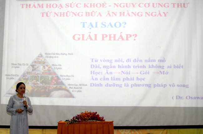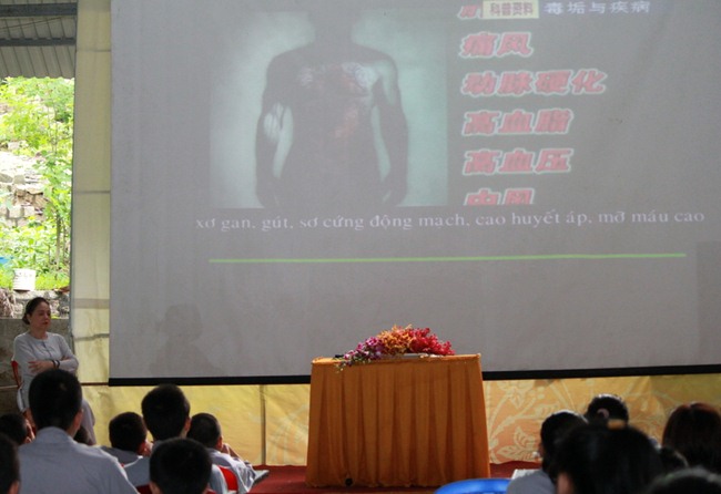 Nhân đây, Giảng viên dẫn một bài thơ của bác sĩ Osama (Nhật Bản) – một người giỏi nhất thế giới về ăn chay trường. Nội dung bài thơ: