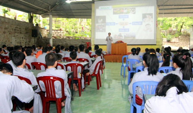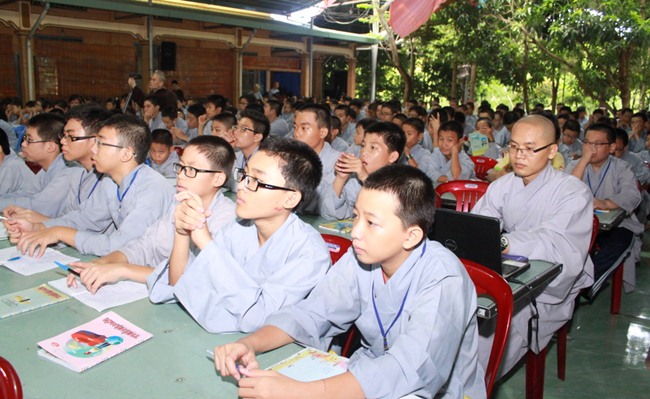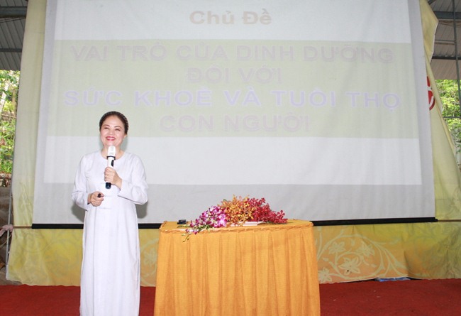 Ban Tổ Chức Khóa hè Thiền Tôn Phật Quang đã mời cô Lê Thị Mộng Hảo – Giảng viên khoa Công nghệ Thực phẩm trường Đại học Công nghệ TP HCM – Chuyên gia dinh dưỡng (trên 30 năm giảng dạy) – GĐ TTĐT Lập trình viên Quốc tế Apteh Ấn Độ – Hiệu phó trường Đào tạo Tài năng TP.HCM đến dạy cho các em Khóa sinh về chuyên đề DINH DƯỠNG & SỨC KHỎE. Buổi học bao gồm 2 bài giảng với chủ đề “VAI TRÒ CỦA DINH DƯỠNG ĐỐI VỚI SỨC KHỎE, TUỔI THỌ CỦA CON NGƯỜI và THỨC ĂN ĐƯỜNG PHỐ, NGUY CƠ GÂY NHIỄM BỆNH HÀNG ĐẦU.