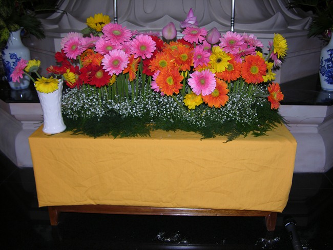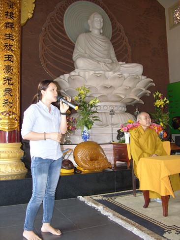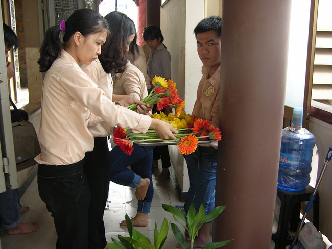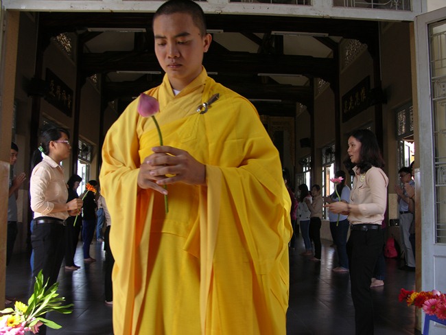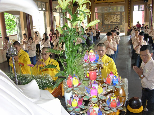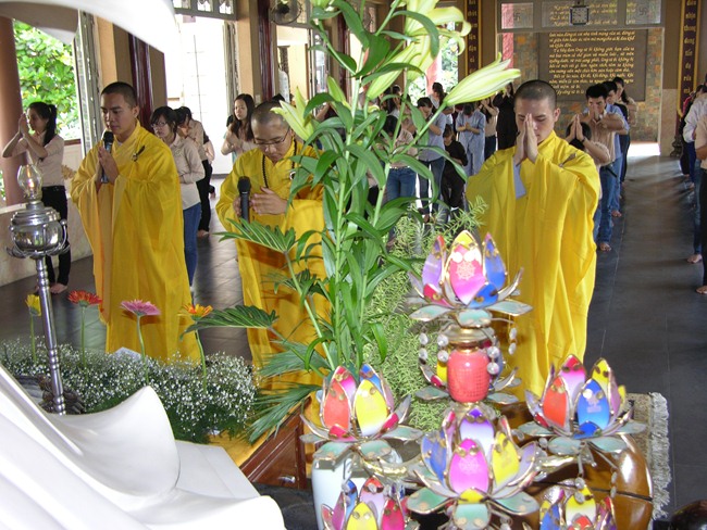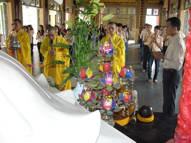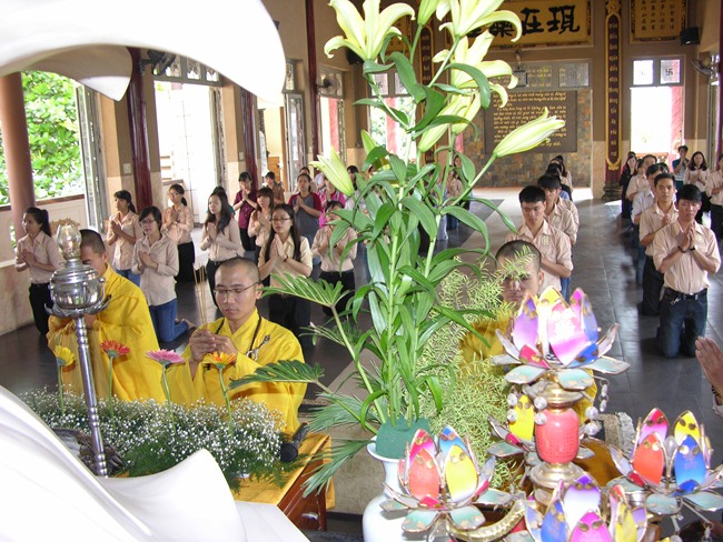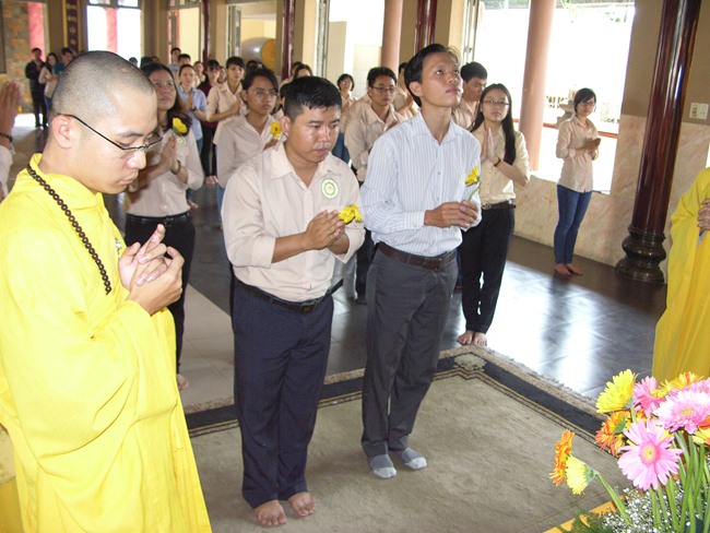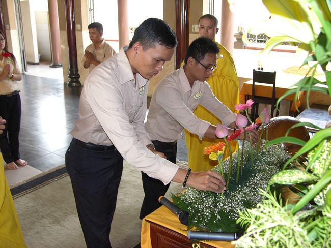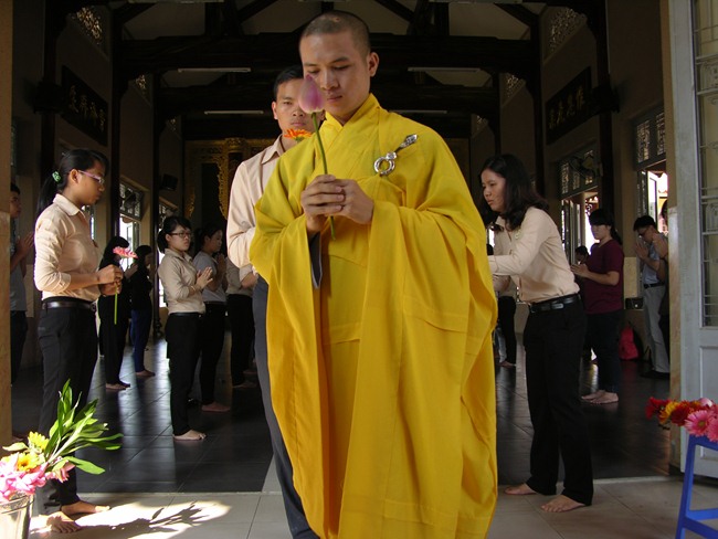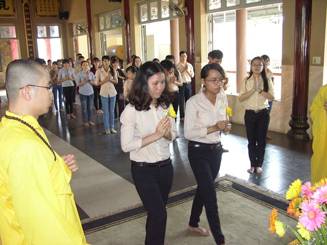 Buổi lễ dâng hoa diễn ra rất thiêng liêng, sau lễ có sự quang lâm của Hòa Thượng Thích Viên Giác, Cố vấn chứng minh, Trụ Trì chùa Từ Tân đã chia sẽ với các bạn trẻ một thời pháp thoại ngắn về ý nghĩa của hoa, đó là hoa tượng trưng vẽ đẹp, cho sự tươi trẻ và đồng thời cũng tượng trưng cho sự vô thường trong đời sống, ý nghĩa của sự dâng hoa.