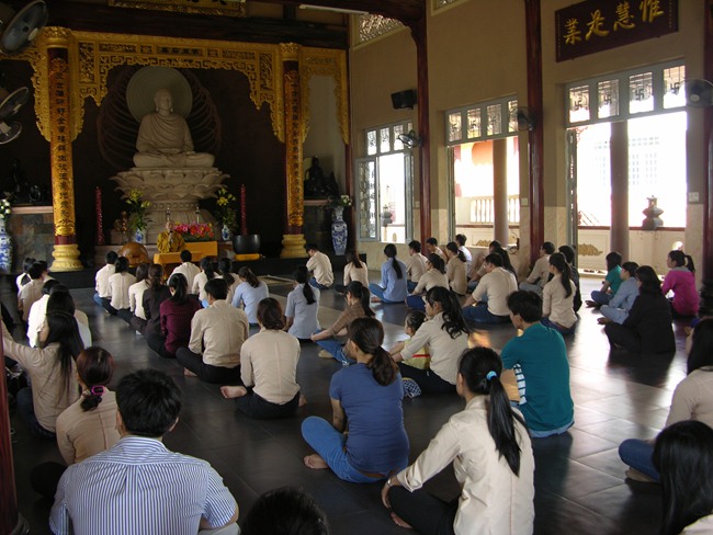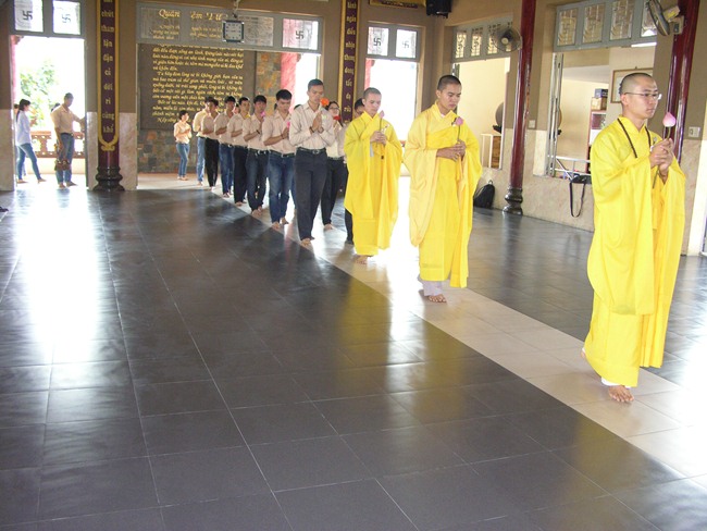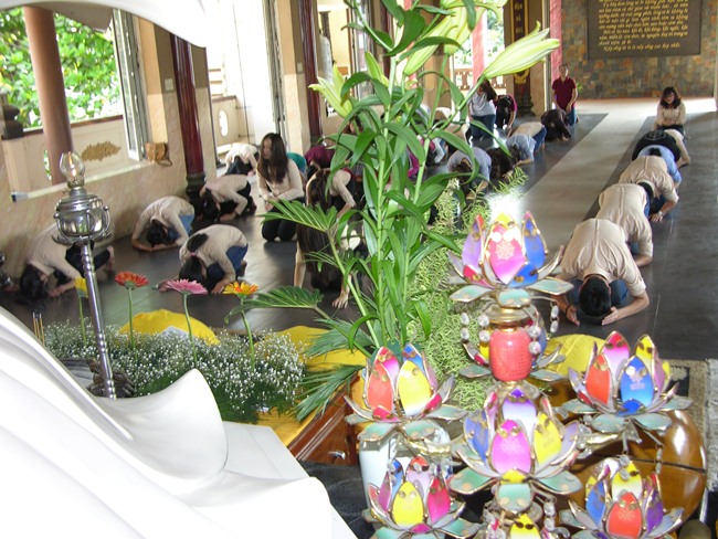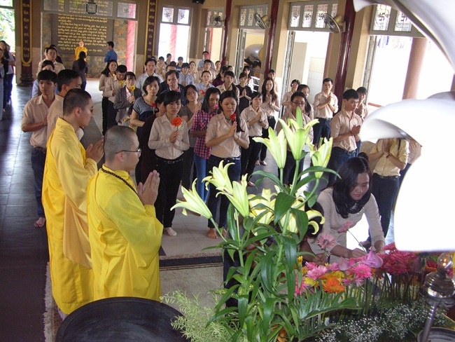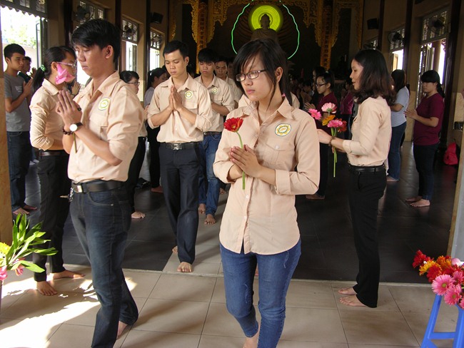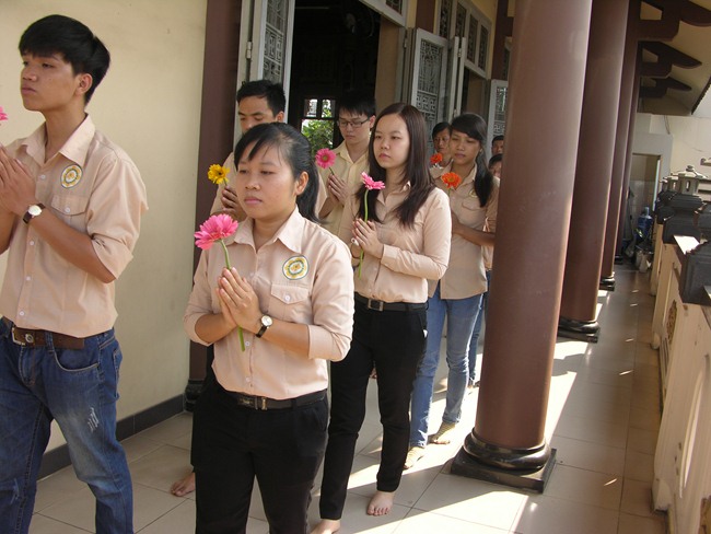 Sau thời khóa lễ Phật, là chương trình thiền hành và dâng hoa cúng Phật.