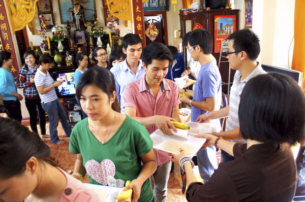 Cuối buổi sinh hoạt là chương trình phát 300 phần cháo chay cho bệnh nhân nghèo tại Bệnh viện An Bình. Đây là việc làm thiện sự, phúc lợi cộng đồng, cứ 2 tuần 1 lần tại Chùa Thiện Mỹ … luôn sẵn sàng mời gọi những bạn trẻ đến để tu học và làm cho cuộc sống của mình có ý nghĩa hơn.