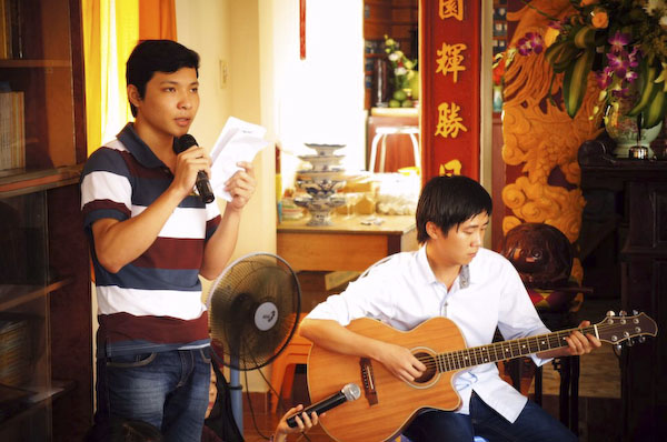 Đại chúng được thực tập ăn cơm trong chánh niệm và sinh hoạt nhạc khúc Thiền ca. Với cây đàn ghi-ta rất mộc, bài hát “RỪNG SA-LA THU” được cất lên trong không khí nồng ấm tình yêu thương của những người trẻ học Phật sống đời thiện lành.