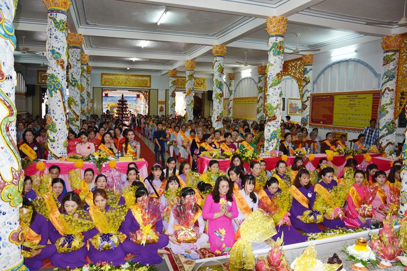 Sau phần tuyên bố lý do và giới thiệu thành phần tham dự; Sư Cô TN Tâm Ngộ thay lời Sư Cô trụ trì tuyên đọc tiểu Sử của Cố Hoà Thượng – thượng Trí hạ Huệ. Thứ đến là nghi thức dâng Hoa và dâng Lục cúng dường lên Tam Bảo; Tiếp theo Phật tử nguyễn Diễm Huyền đại diện cho toàn thể hội chúng hoài niệm tri ân trong ngày Vu Lan và nói lên ý nghĩa cài Hoa Hồng; Tiếp đó là nghi thức cài Hoa Hồng cùng với chương trình tặng Hoa mừng thọ Cha, Mẹ. Tiếp nối chương trình Phật tử Lý Kiều Quanh tác bạch dâng cúng Pháp y Ca Sa.