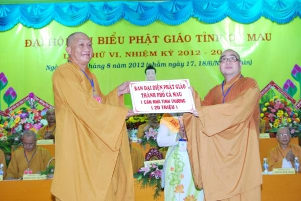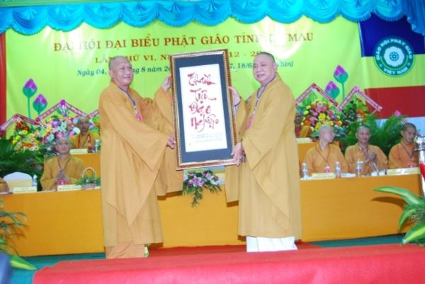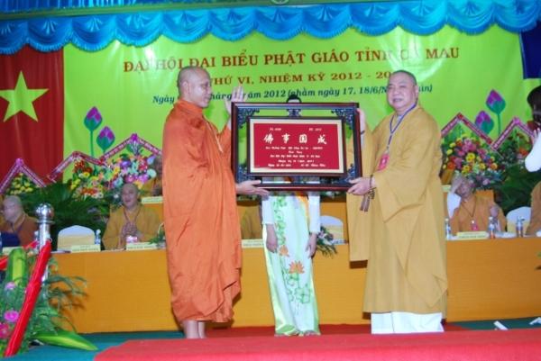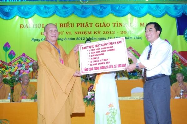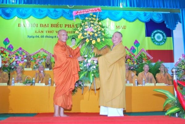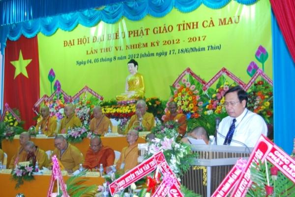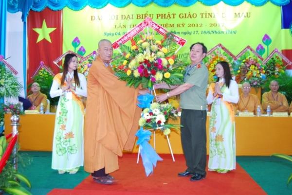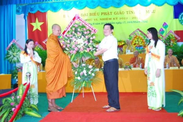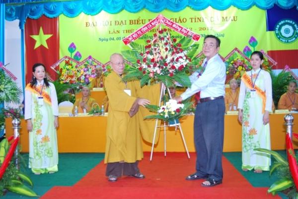 Đại hội cũng được đón nhận lời chúc mừng từ phía chính quyền các cấp. Đại diện là ông Trịnh Minh Thành, Trưởng Ban Dân Vận Tỉnh Uỷ, Chủ Tịch UBMTTQVN tỉnh Cà Mau. Ngài Chủ Tịch đánh giá cao, vai trò trách nhiệm, sự đóng góp của Phật Giáo nói chung, của Ban Trị Sự Phật Giáo tỉnh nhà nói riêng là hết sức to lớn đối với sự nghiệp cứu nước trong thời chiến, xây dựng bảo vệ tổ quốc, chăm lo đồng bào ruột thịt thời bình. Đặc biệt trong nhiệm kỳ 5 năm qua Ban Trị Sự Tỉnh Hội Cà Mau ngoài việc điều hành quản lý các tự viện tỉnh hội còn sánh bước cùng Đảng và Nhà nước chăm lo đời sống cho người dân nghèo trong tỉnh, giáo dục tín đồ sống thiện sống đẹp, góp phần không nhỏ trong công cuộc phát triển và ổn định xã hội.
