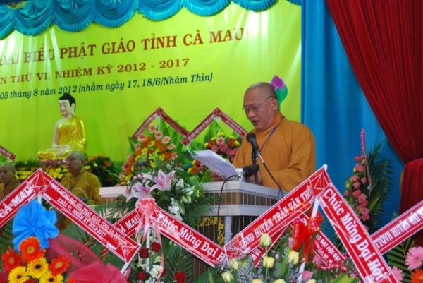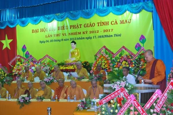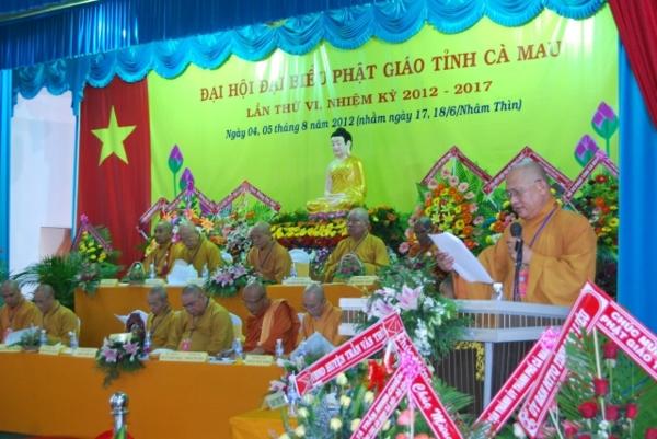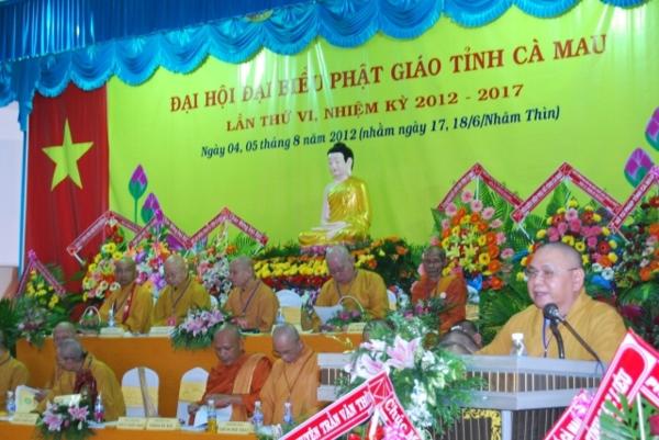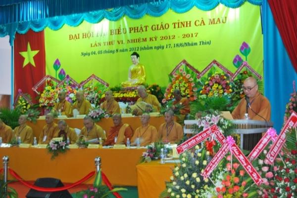 Sau nghi thức chào Quốc Kỳ và Đạo kỳ, TT Thích Huệ Thành quyền Trưởng ban Trị sự tỉnh Cà Mau đọc diễn văn khai mạc cho biết trải qua 5 nhiệm kỳ, Phật Giáo Cà Mau luôn kế thừa truyền thống đoàn kết, hoà hợp nhằm phát huy tiềm năng nội lực trí tuệ tập thể để phụng sự đạo pháp – dân tộc. Những thành tựu mà tỉnh hội đạt được trong nhiệm kỳ qua chính là kết tinh trí tuệ của một tập thể đã có sự thống nhất ý chí cao, trong đó có sự chỉ đạo sâu sát kịp thời của Trung Ương Giáo hội, sự hỗ trợ tận tình của các cấp chánh quyền.