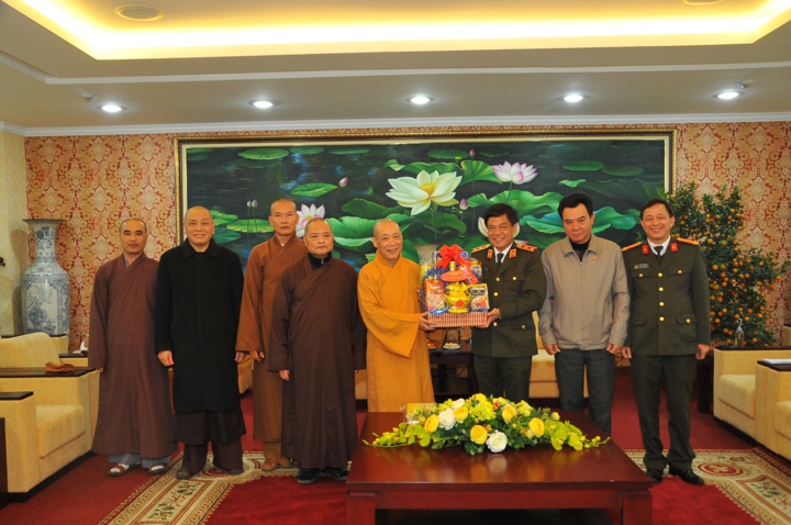 Sau đó, chư Tôn đức thường trực BTS GHPGVN do Hòa thượng Thích Bảo Nghiêm – Trưởng BTS GHPGVN thành phố Hà Nội làm trưởng đoàn đã tới thăm và chúc Tết công an thành phố Hà Nội.