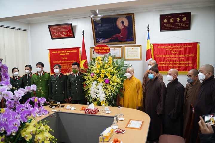 Thường trực Ban trị sự GHPGVN thành phố Hà Nội đã vinh dự được đón tiếp Đoàn Đại biểu Quốc hội thành phố Hà Nội do bà Phạm Thị Thanh Mai – Thành ủy viên, Phó trưởng đoàn chuyên trách Đoàn đại biểu Quốc hội Hà Nội dẫn đoàn; phái đoàn Công an thành phố Hà Nội do Thiếu tướng Nguyễn Anh Tuấn – Uỷ viên thường vụ, Phó giám đốc Công an Thành phố Hà Nội dẫn đoàn và phái đoàn Mặt trận Tổ quốc Việt Nam thành phố Hà Nội do bà Nguyễn Thị Kim Dung – Phó chủ tịch Ủy ban Mặt trận Tổ quốc Việt Nam thành phố Hà Nội dẫn đoàn.