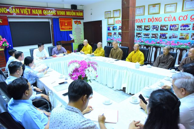 Tham dự buổi làm việc, về phía lãnh đạo Giáo hội có Hòa thượng Thích Thọ Lạc – Ủy viên Thường trực HĐTS, Trưởng Ban Văn hoá Trung ương; Thượng tọa Thích Nhật Từ – Ủy viên Thường trực HĐTS, Phó Trưởng Ban Thường trực Ban Phật giáo Quốc tế Trung ương; Thượng tọa Thích Trí Chơn – Ủy viên HĐTS, Phó Trưởng Ban Văn hoá Trung ương, Trưởng Ban Văn hoá Phật giáo TP.HCM, cùng chư tôn đức Ban Văn hoá Trung ương và Ban Văn hoá Phật giáo TP.HCM.