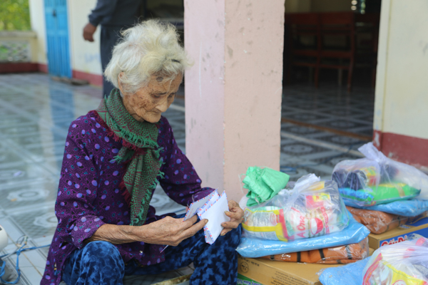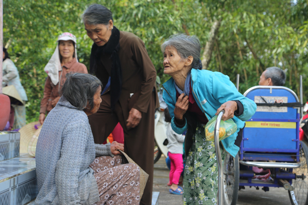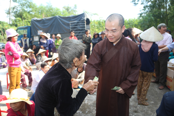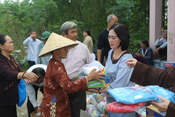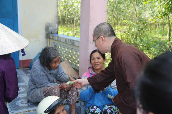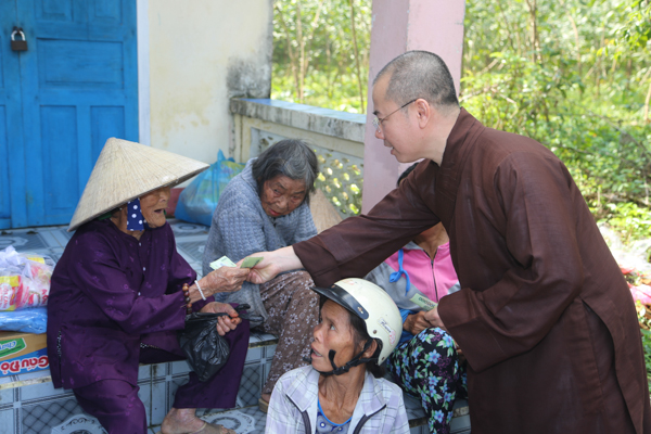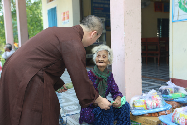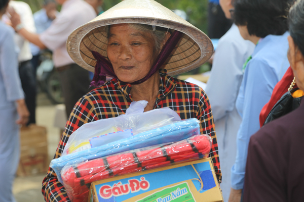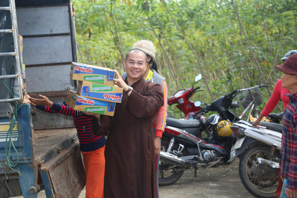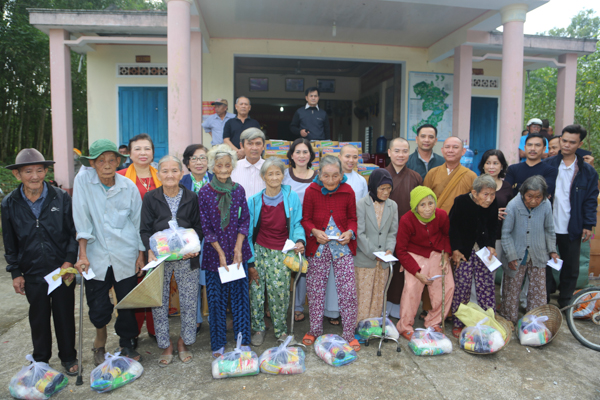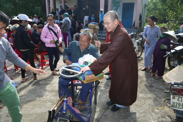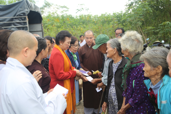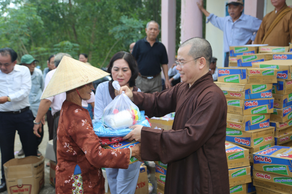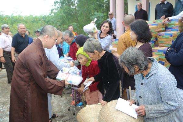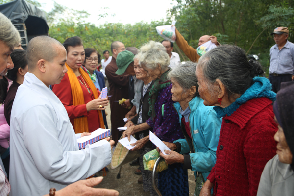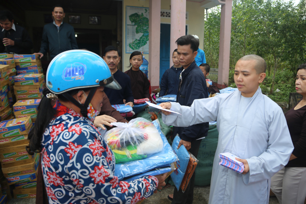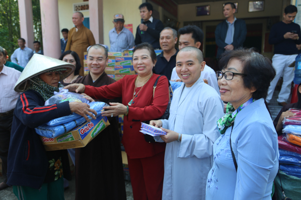 Phái đoàn gồm có ĐĐ. Thích Thông Đạo – UV HĐTS GHPGVN, Phó trưởng ban kiêm Chánh thư ký BTS GHPGVN Tp Đà Nẵng, Trú trì chùa Bà Đa; TT. Thích Huệ Vinh – Phó trưởng BTS kiêm Trưởng ban VHPG GHPGVN Tp Đà Nẵng, Trú trì chùa Quán Thế Âm; SC. Thích Nữ Giới Bửu và đạo hữu Phật tử chúng Mật tông Đà La Ni đã thăm, động viên và trao tặng 150 suất quà trị giá 600.000đ bao gồm chăn, màn, nhu yếu phẩm và 350.000đ tiền mặt.
