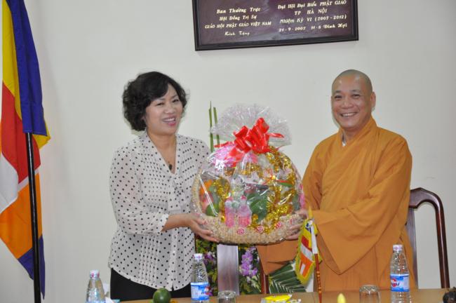 Bà Nguyễn Minh Hà – Thành ủy viên, Chủ tịch Liên hiệp hội phụ nữ thành phố Hà Nội, cùng phái đoàn đến chúc mừng nhân dịp Đại Lễ Phật Đản PL2555