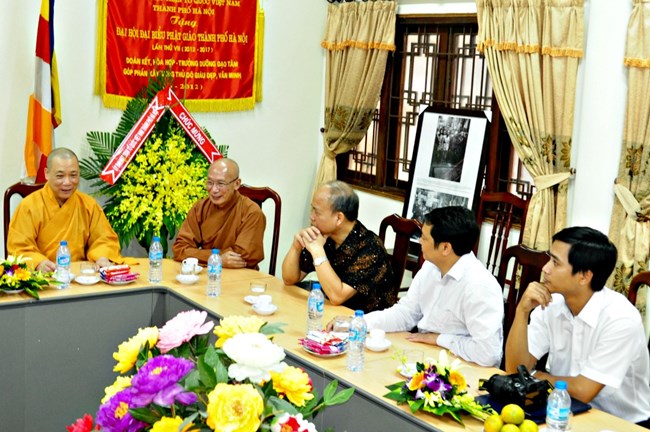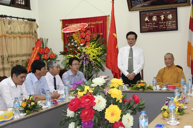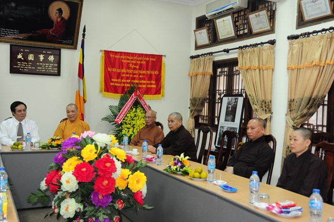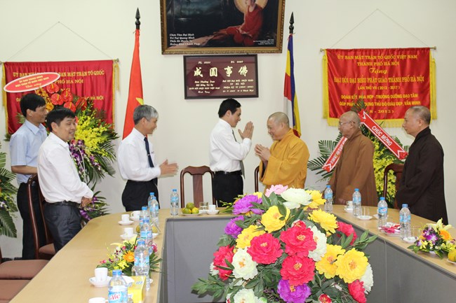 Sau đó, phái đoàn của Ủy ban Mặt Trận Tổ Quốc Việt Nam do ông Bùi Anh Tuấn và ông Nguyễn Xuân Điệp đồng Phó chủ tịch Ủy ban Mặt Trận Tổ Quốc Việt Nam thành phố Hà Nội dẫn đoàn đã đến thăm và chúc mừng BTS GHPGVN thành phố Hà Nội.