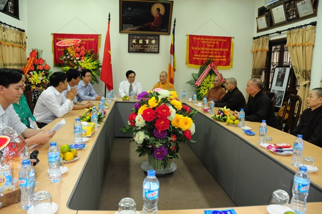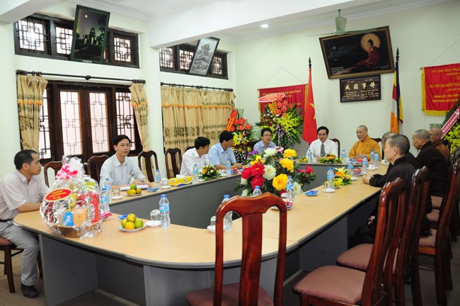 Phái đoàn thứ 3 trong ngày hôm nay do ông Nguyễn Thanh Bình – Phó cục trưởng Cục công an và phái đoàn đã tới Trụ sở chúc mừng GHPGVN thành phố Hà Nội.