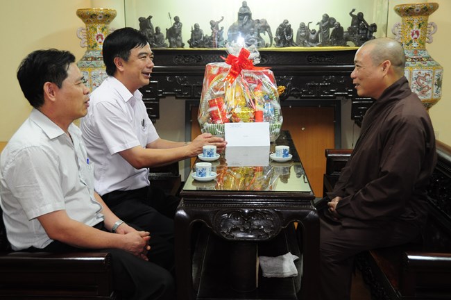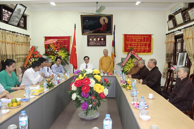 Buổi chiều cùng ngày, ông Bùi Tuấn Ngọc đại điện Phó Ban dân vận Thành ủy đã đến chùa Lý Triều Quốc Sư thăm và chúc mừng Hòa thượng Thích Bảo Nghiêm nhân dịp lễ Phật Đản PL 2559 – DL2015.