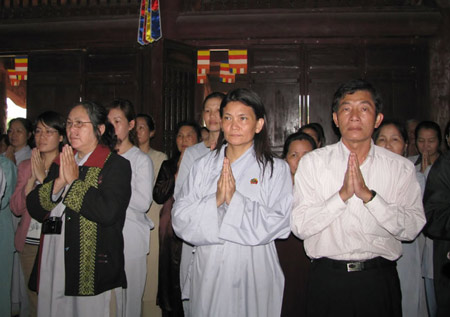 Phật tử lễ Phật trước giờ khai mạc khóa tập huấn