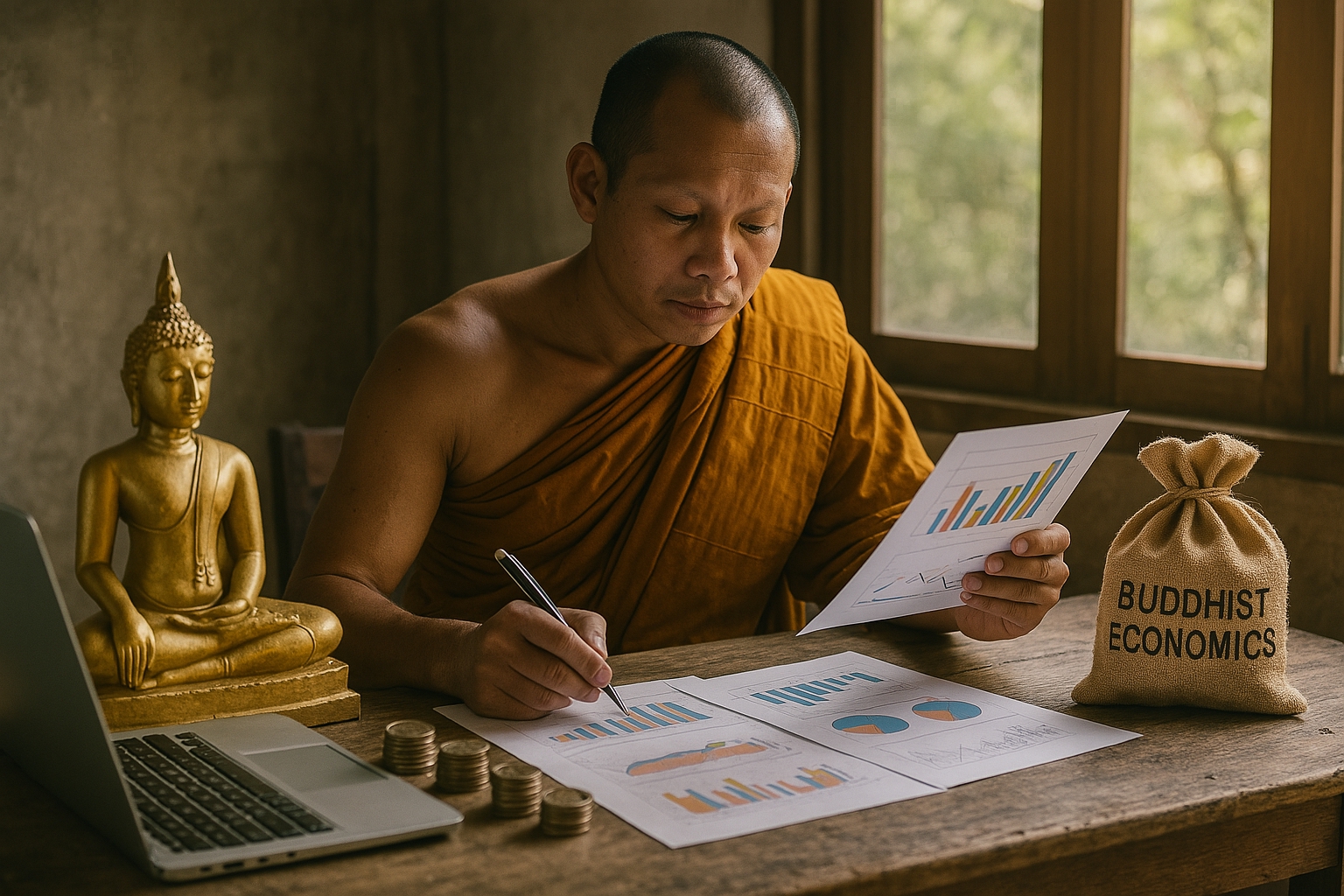Kinh tế học Phật giáo, một thuật ngữ được nhà kinh tế học E.F. Schumacher phổ biến trong tác phẩm nổi tiếng Small Is Beautiful: Economics as if People Mattered (1973), đưa ra một khuôn khổ thay thế cho các mô hình kinh tế phương Tây truyền thống. Dựa trên các nguyên lý của Phật giáo, cách tiếp cận này tái định nghĩa mục đích của hoạt động kinh tế, nhấn mạnh việc giảm thiểu khổ đau, nuôi dưỡng sự giàu có nội tâm và thúc đẩy một lối sống bền vững, đầy từ bi. Trái ngược với kinh tế học dòng chính – thường đề cao tăng trưởng vật chất, tiêu dùng và lợi nhuận – kinh tế học Phật giáo tập trung vào sự đầy đủ, hạnh phúc nội tại và sự kết nối giữa mọi sinh thể. Bài tiểu luận này sẽ khám phá những giả định cốt lõi của kinh tế học Phật giáo, đi sâu vào các nguyên lý nền tảng, phê phán chủ nghĩa vật chất, và đưa ra một tầm nhìn cho một hệ thống kinh tế nhân văn và bền vững hơn.