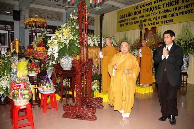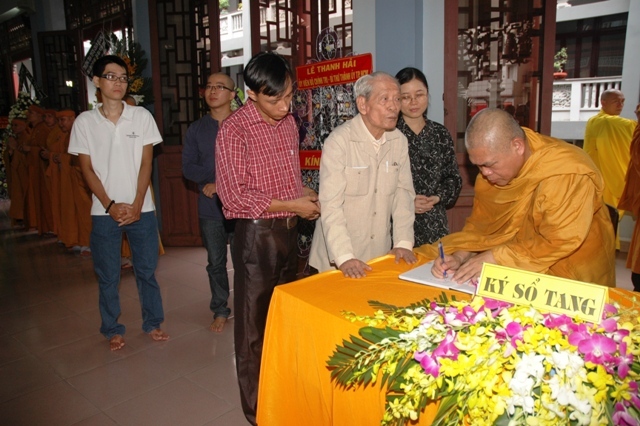 Các phái đoàn phúng viếng tang lễ gồm có:Hệ phái Khất Sĩ, Đảng ủy HDND-UBND-UBMTTQ P.8-Q.3, BTSPG Kiên Giang, BKT Liên Hoa Đài, BTSPG Hậu Giang, Tổ đình Vĩnh Nghiêm, BTSPG Tiền Giang, Ông: Nguyễn Xuân Phúc + Bùi Hữu Dược phái đoàn Chính Phủ, Gia đình phó Thủ Tướng Nguyễn Thiện Nhân, BĐDPG.Q.Tân Bình, Thiền Viện Vạn Hạnh, Văn phòng Quốc hội, BĐDPG.Q.Tân Phú, Phật giáo Nam tông Khmer, BTSPG Bến Tre, Môn đồ pháp quyến ĐLHT, Chủ tịch nước CHXHCNVN, Chùa Thiên Phước + Pháp Trí + Bảo Ấn, HDND-UBND-UBMTTQ.P.12-Q.10, Chùa Giác Nguyên Q.4, Đại Tướng Lê Hồng Anh và Phu nhân Nguyễn Kim Thu cùng Gia đình Ông Nguyễn Chiến Bình – Phó Thanh Tra Chính Phủ, Chư Ni PG Lâm Đồng, BTSPG Đà Nẵng.