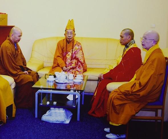 Hai năm 2008 – 2009, Trung ương Giáo hội có chuyến hoằng pháp châu Âu gồm các nước Ba Lan, Đức, Hungary, Nga, Pháp, Séc và Ukraina, cả 2 lần đều do Hoà thượng làm Trưởng đoàn. Và, năm 2010 tôi thỉnh Hoà thượng sang chứng minh lễ Lạc thành chùa Giác Đạo, CH. Séc, ngôi chùa tôi nhận trách nhiệm trụ trì. Đó là khoảng thời gian 3 năm liền tôi được gần gũi, lân mẫn Ngài nhiều nhất. Có những lúc trên chuyến bay dài thâu đêm, có những khi trên cung đường quanh co dọc ngang xứ tuyết, thầy trò nói chuyện cùng nhau; Hòa thượng say sưa với những khám phá mới của mình về Tam học, Tứ đế, Duyên khởi . . . Rồi, những câu chuyện về thời cuộc, có những tiếng cười giòn tan và có cả những ưu tư với nhiều dấu chấm than(!), chấm lững( . . .).